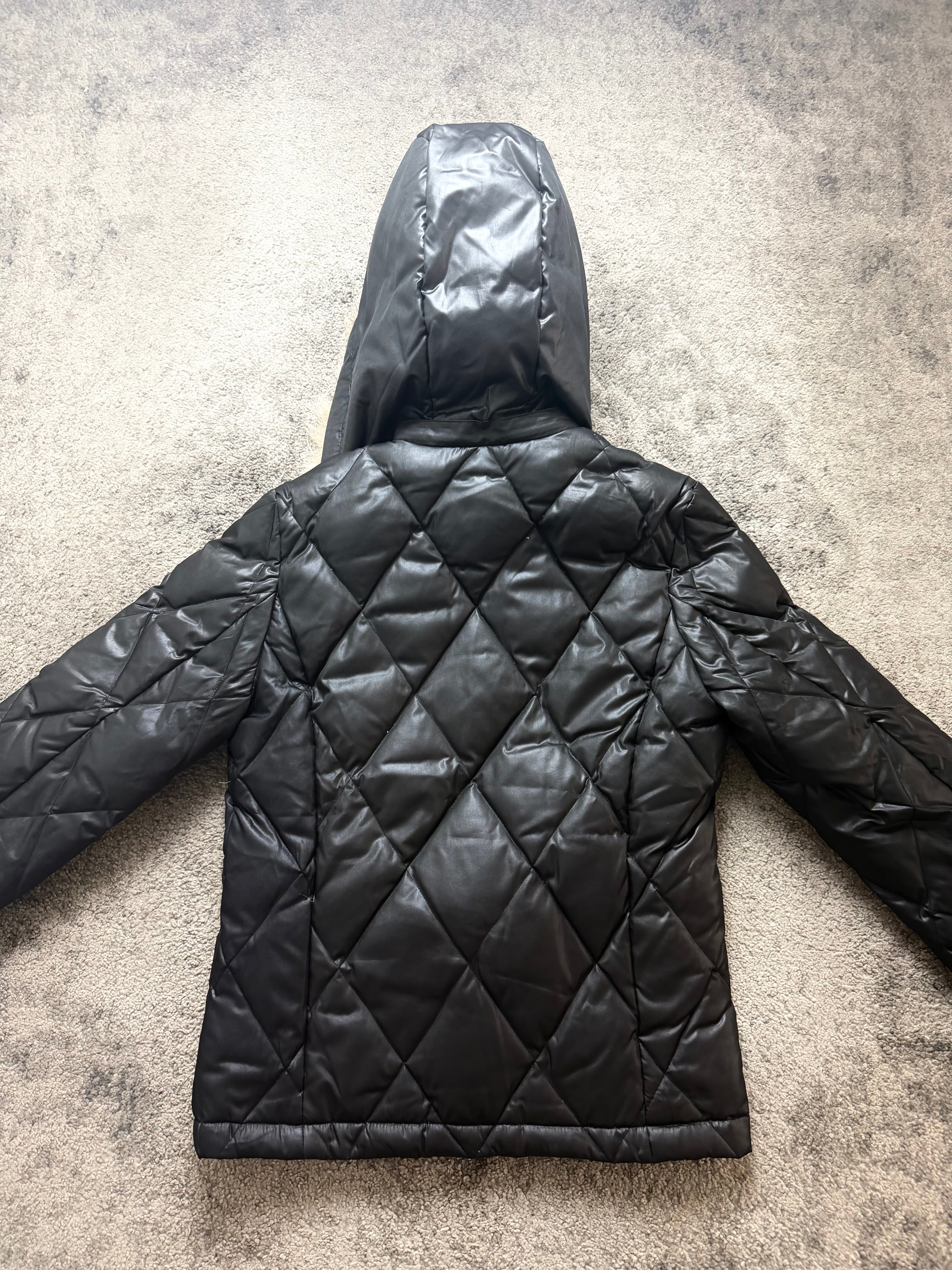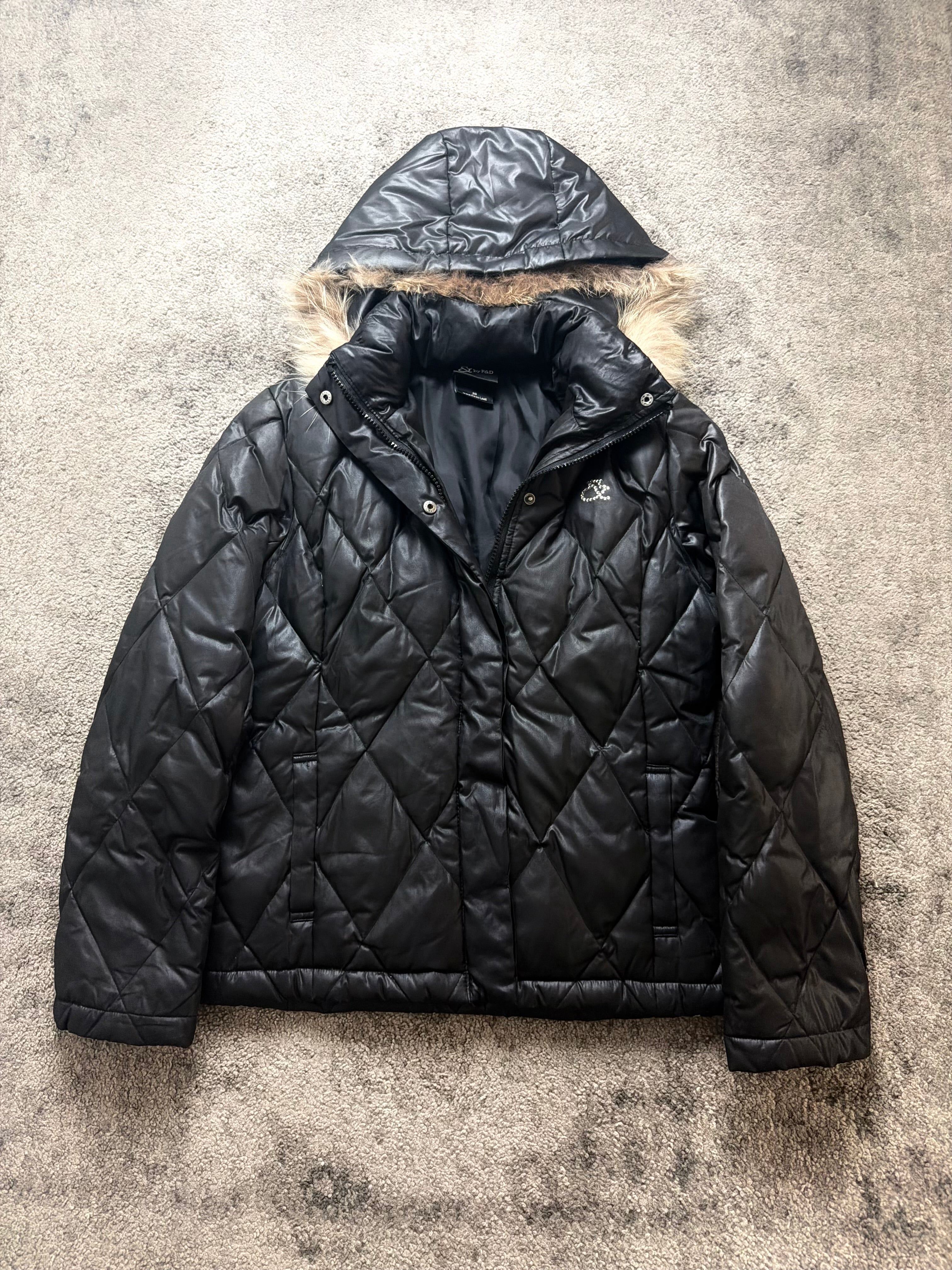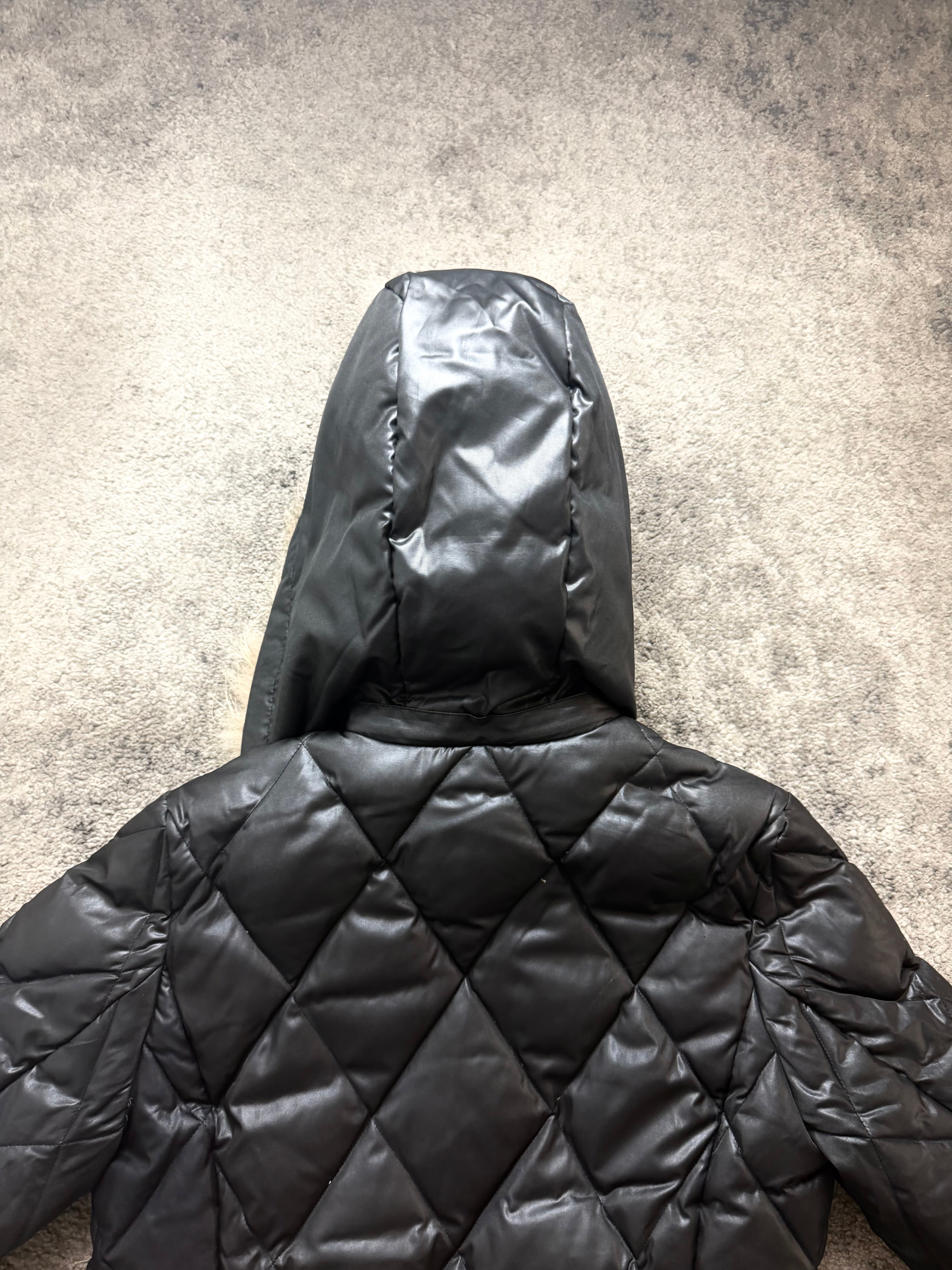 A dark, quietly powerful P&D jacket that lives in that late-2000s Japanese archive space. Diamond quilting, soft shine, fur-trim hood—this one feels introspective, worn-in, and emotional without trying too hard. Pure ifsixwasnine energy, but understated.