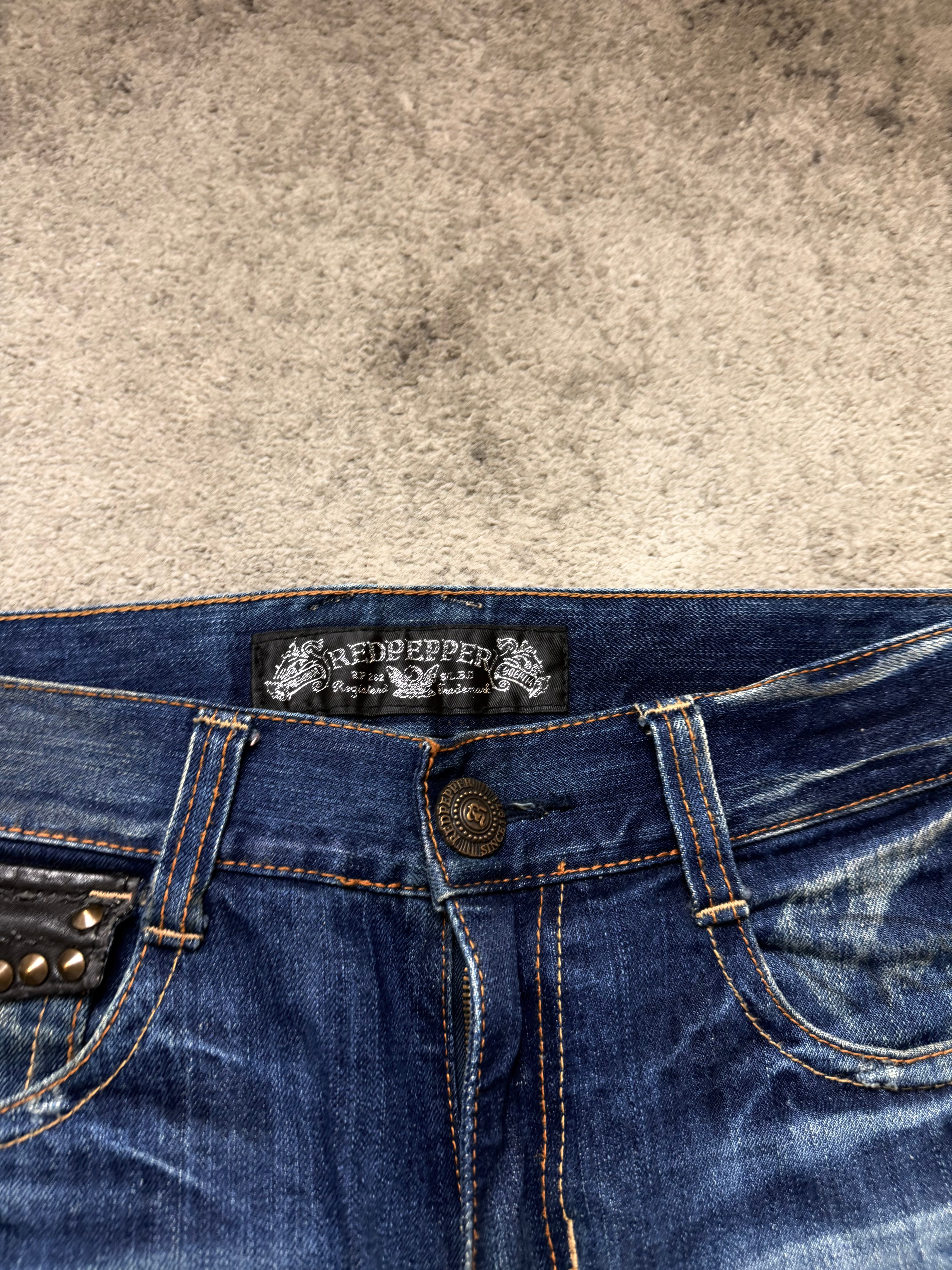 This RED PEPPER pair captures that raw, early-2000s Japanese archive attitude — bold, rebellious, and emotionally charged. A perfect crossover between rock aesthetics and statement denim, very much in the vein of Number Nine and ifsixwasnine.