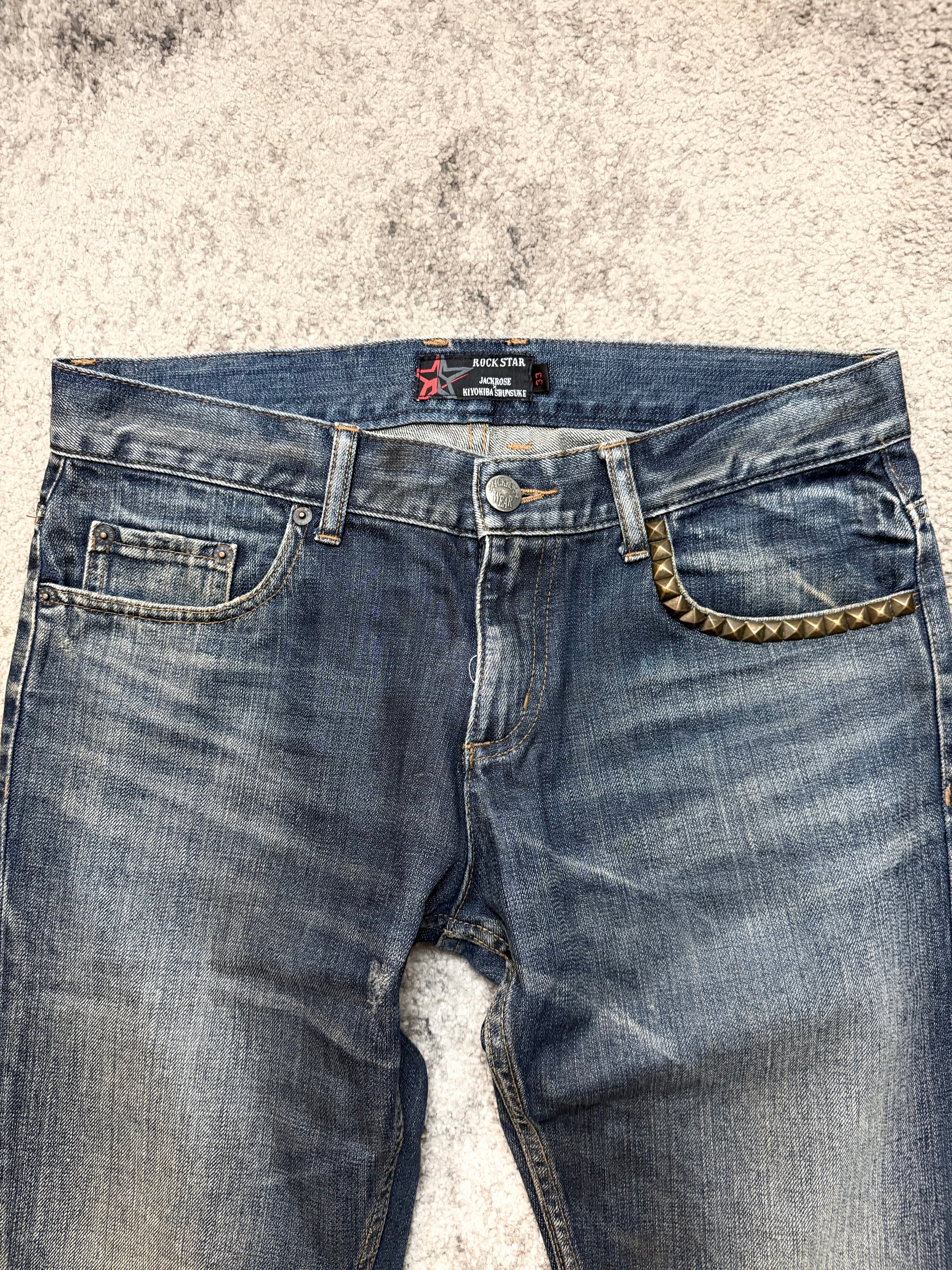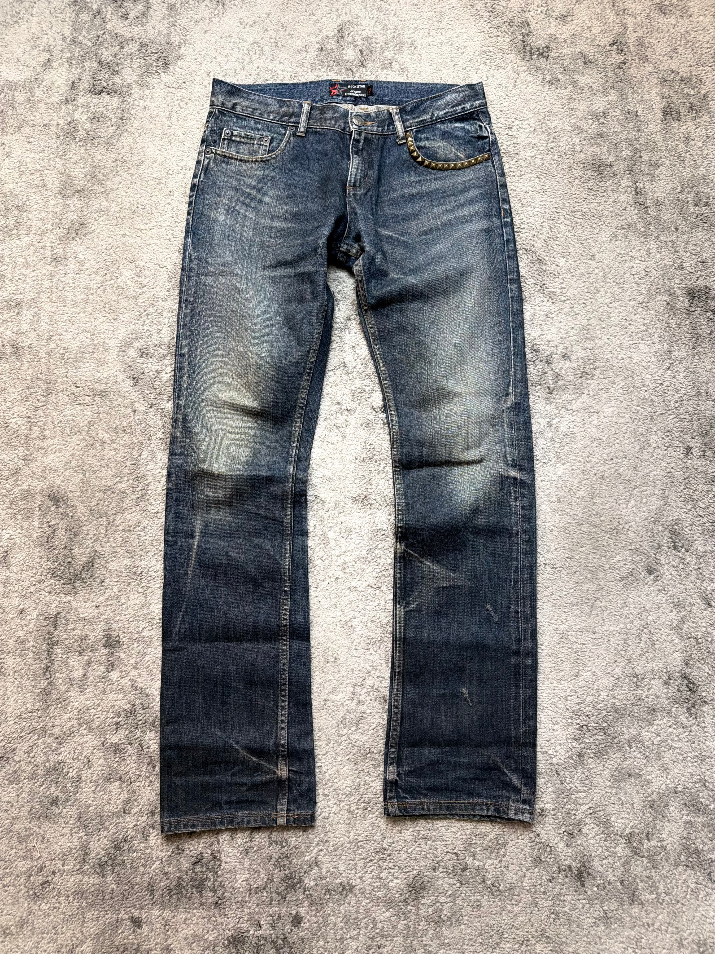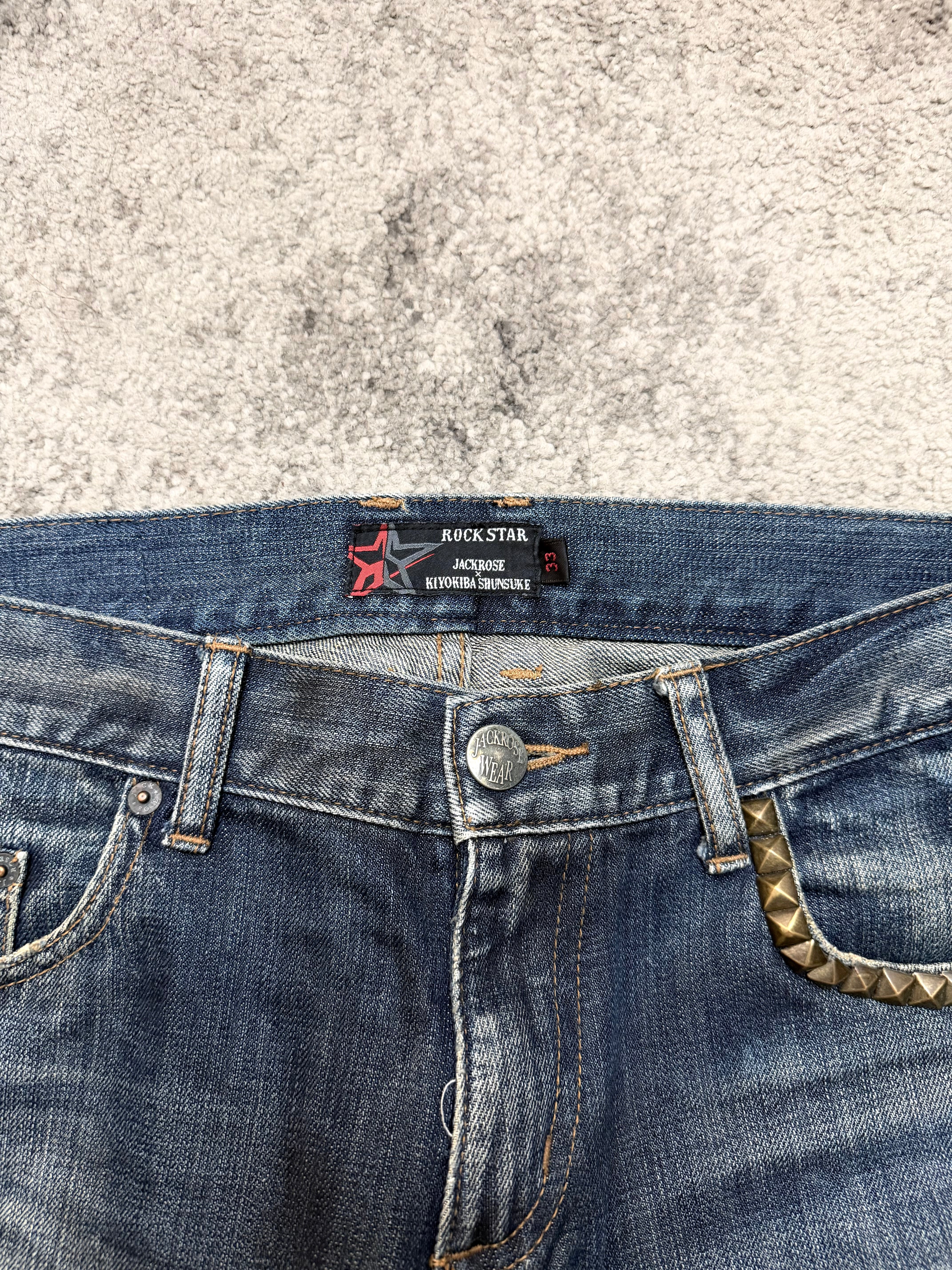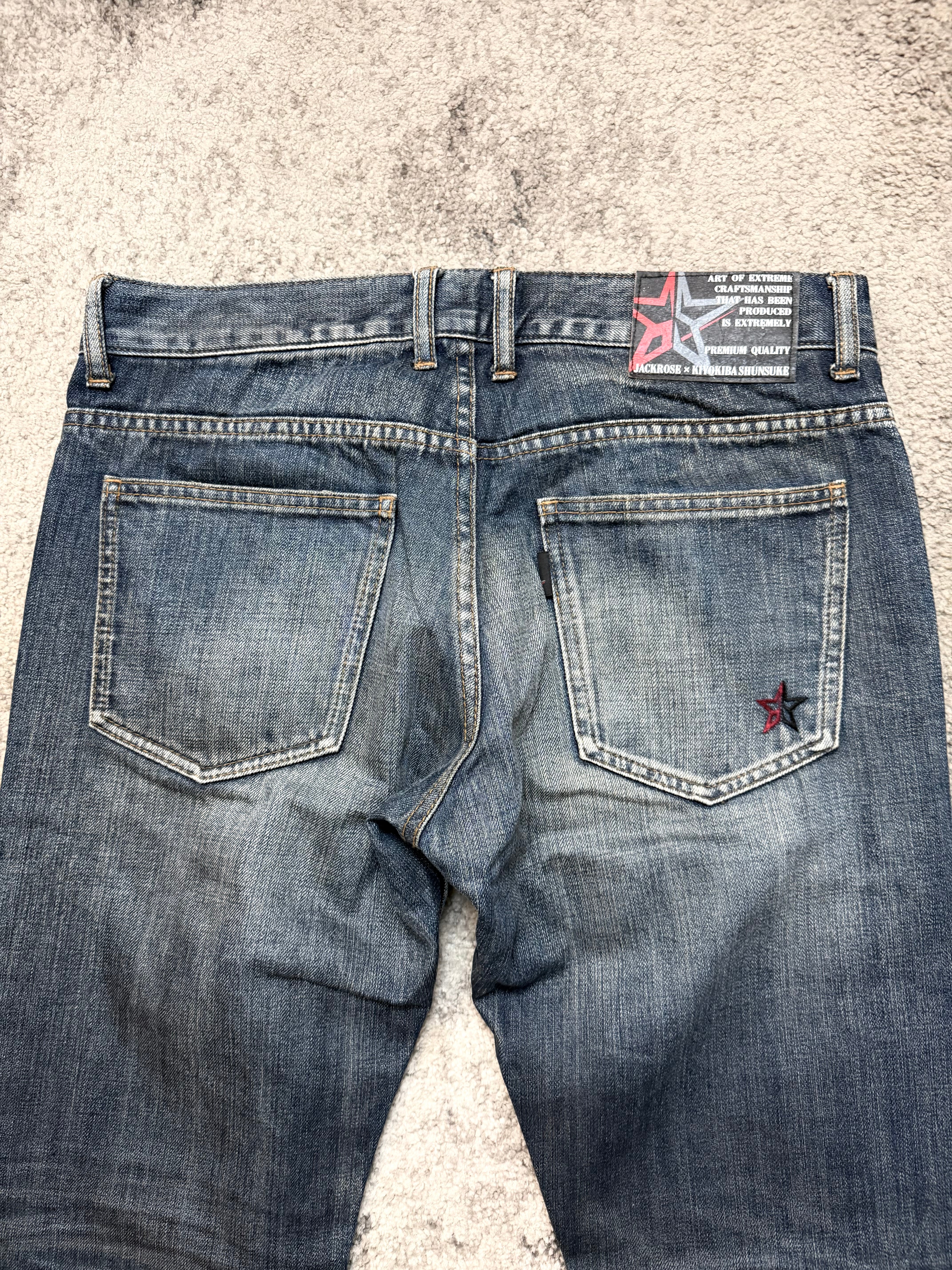 A pair of Japanese archive-coded denim made for anyone who loves that raw, lived-in “night city” energy. These JACKROSE jeans come in size M, carrying a naturally aged fade that feels effortless and real — the kind of wear that can’t be faked.