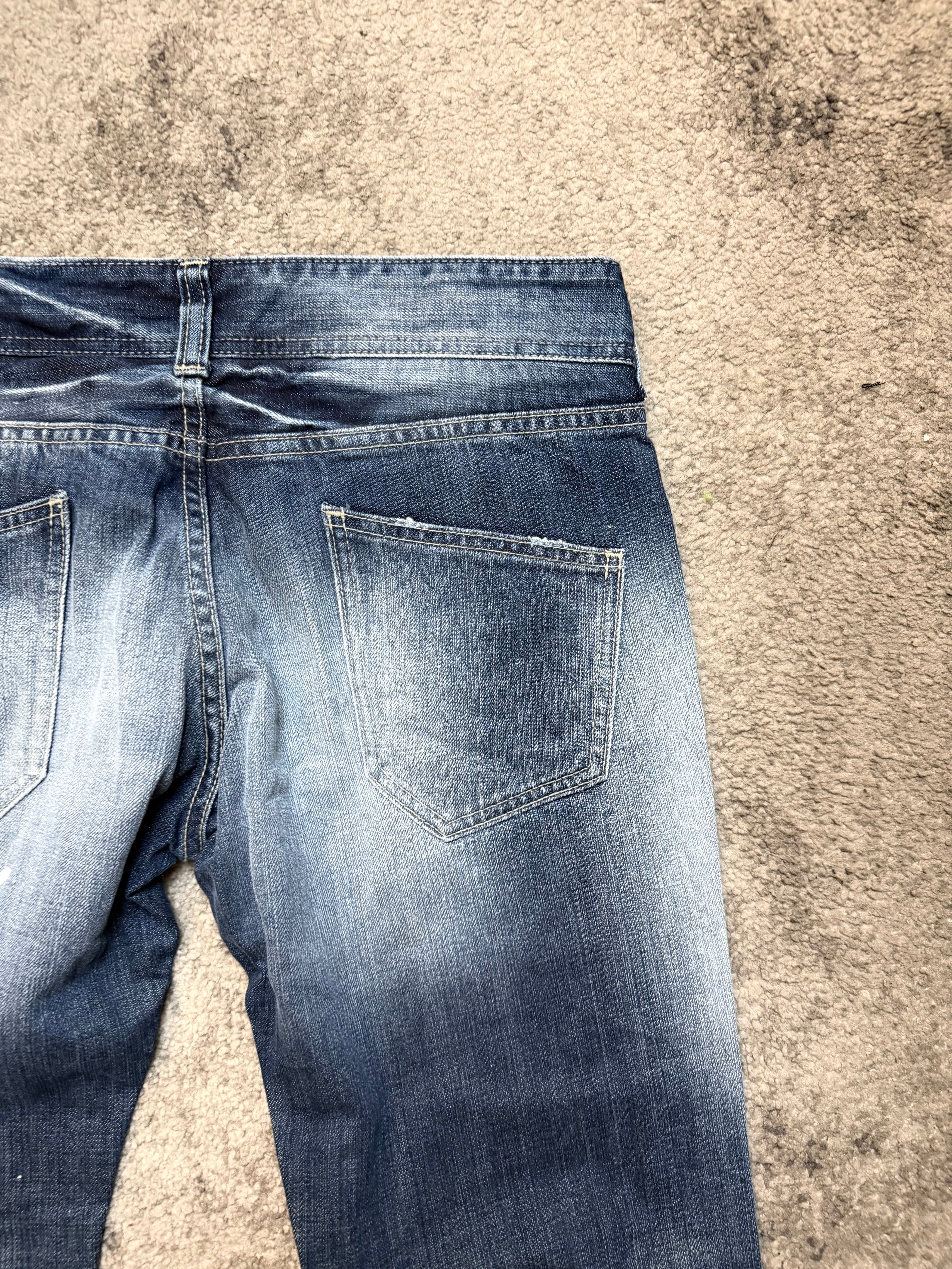 A striking archive pair that balances intensity with control. High-contrast fading and subtle splatter details give this denim a lived, expressive feel — echoing Number (N)ine drama with a restrained ifsixwasnine edge.
