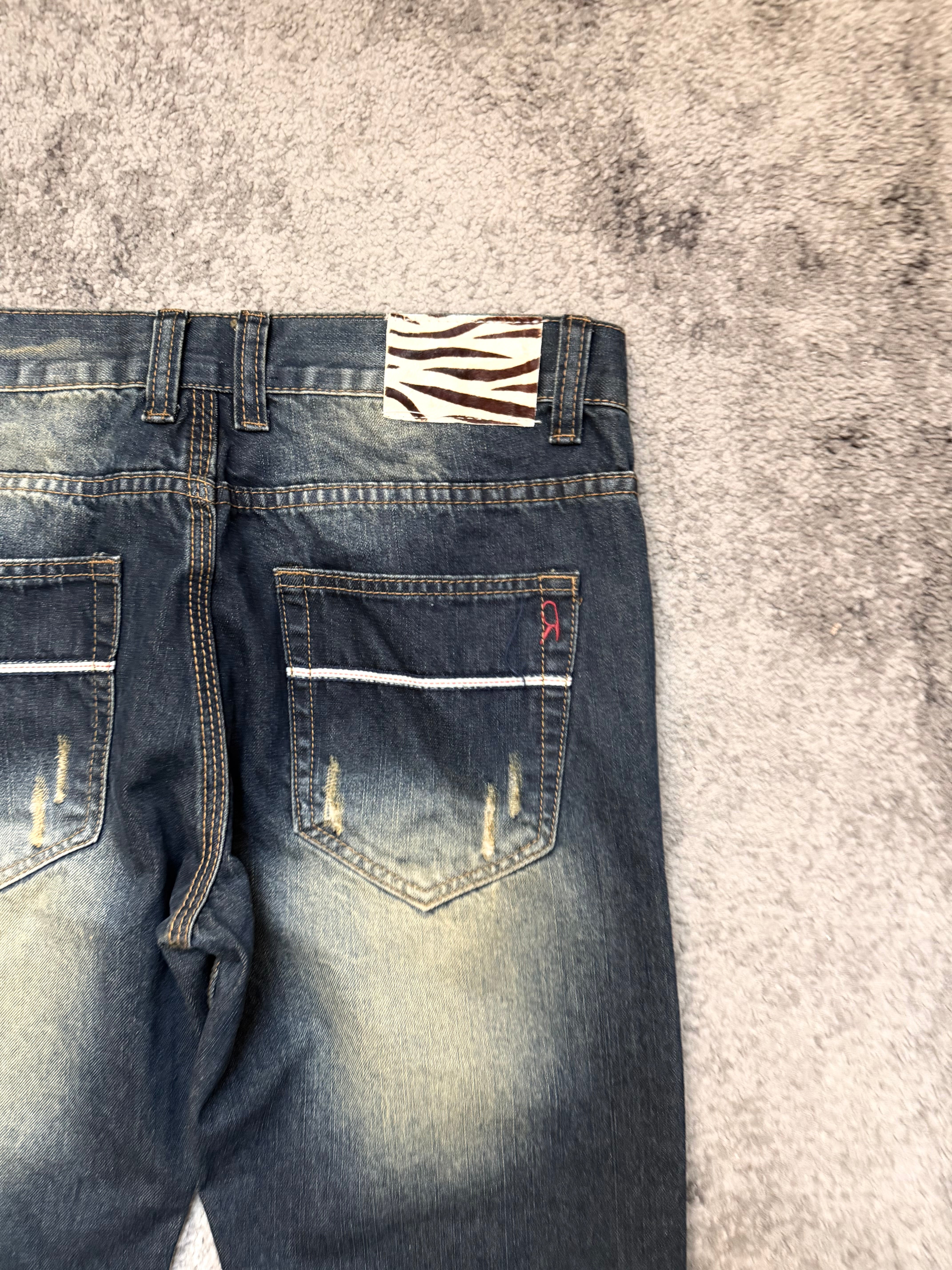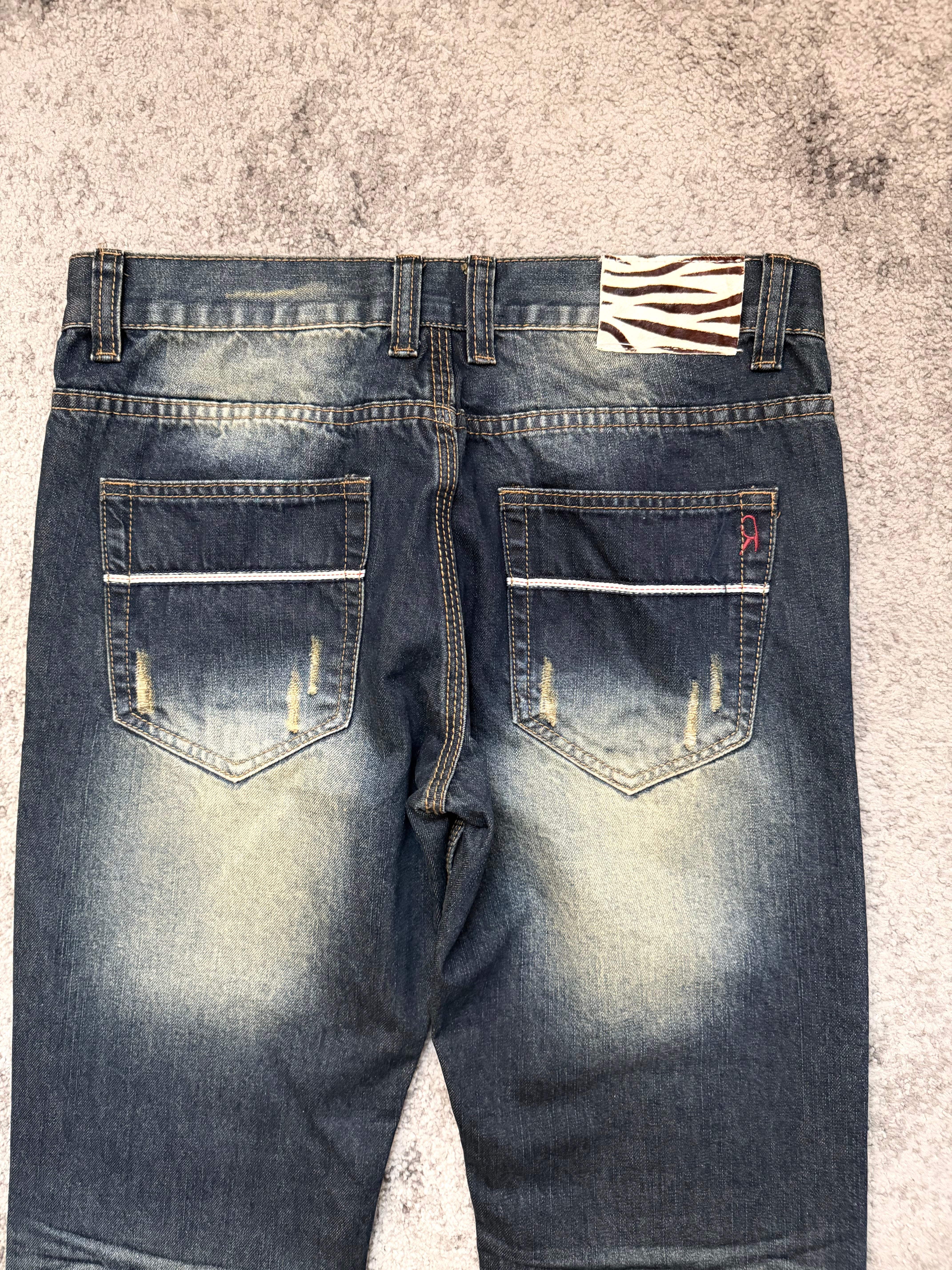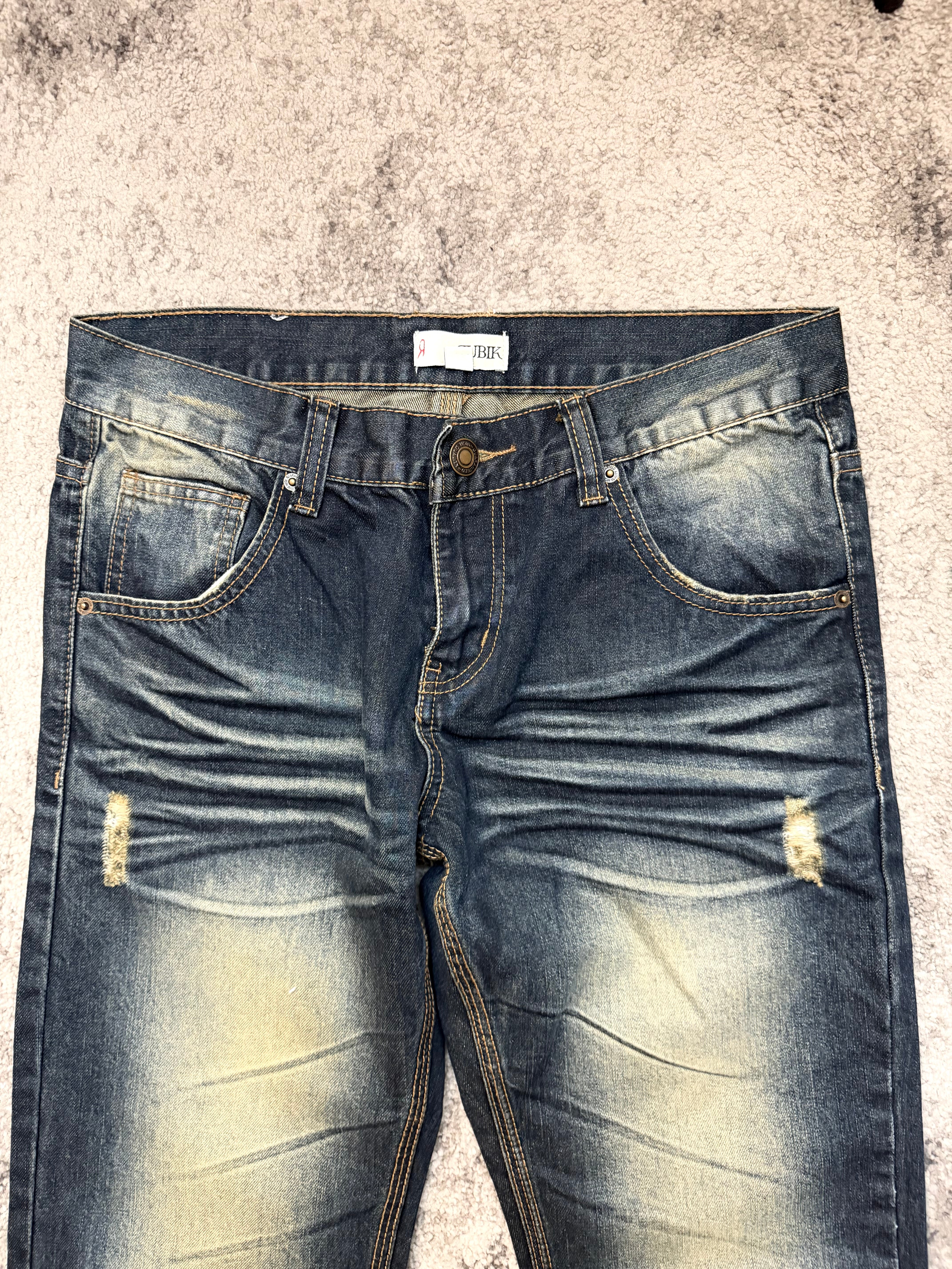 From the streets of Tokyo to the archives of forgotten subcultures, this pair from RUBIK embodies raw movement and quiet rebellion. The sharp whiskering and deep fading create a sculptural pattern — like tension captured in fabric. Minimal branding, just attitude.