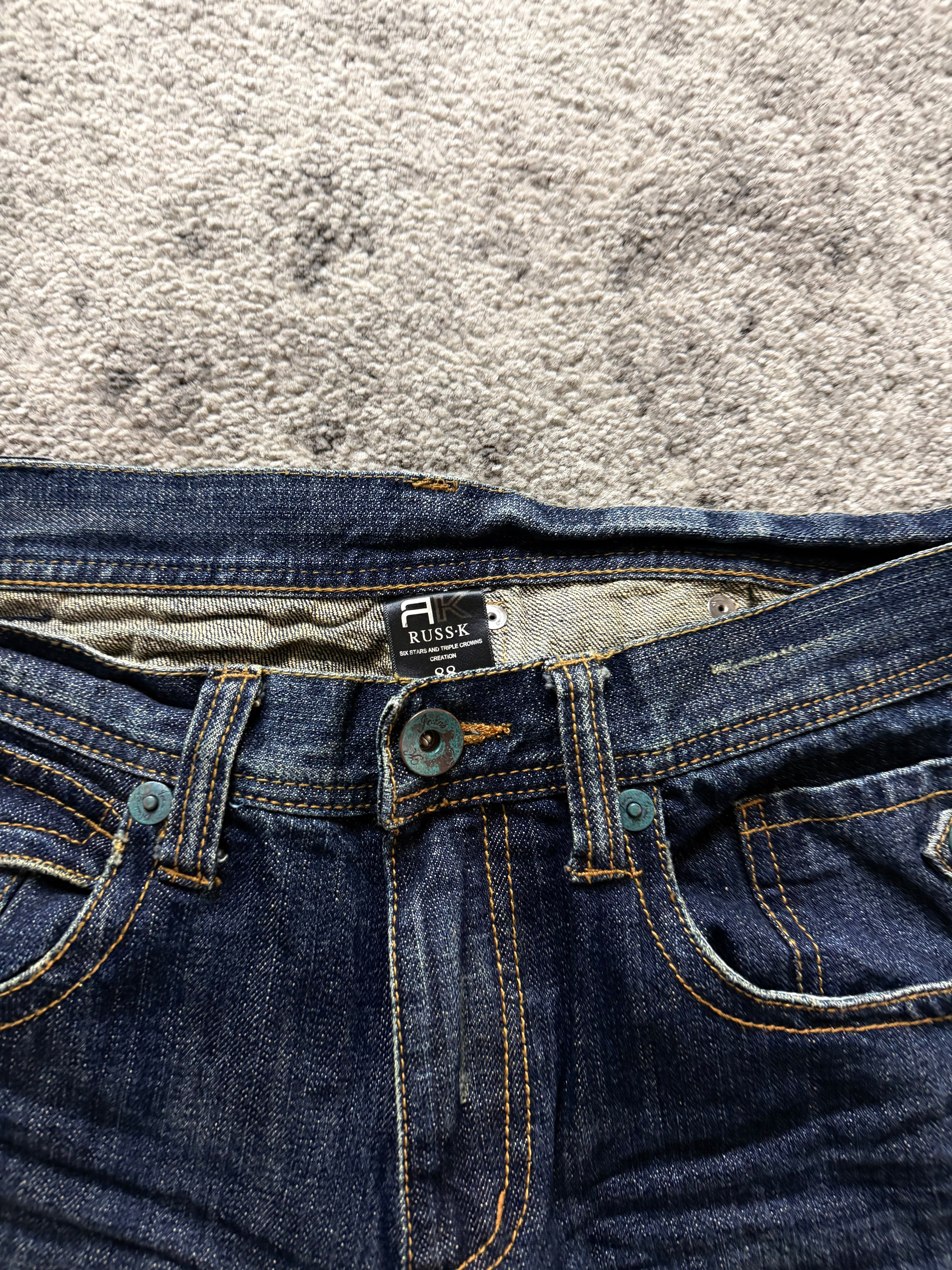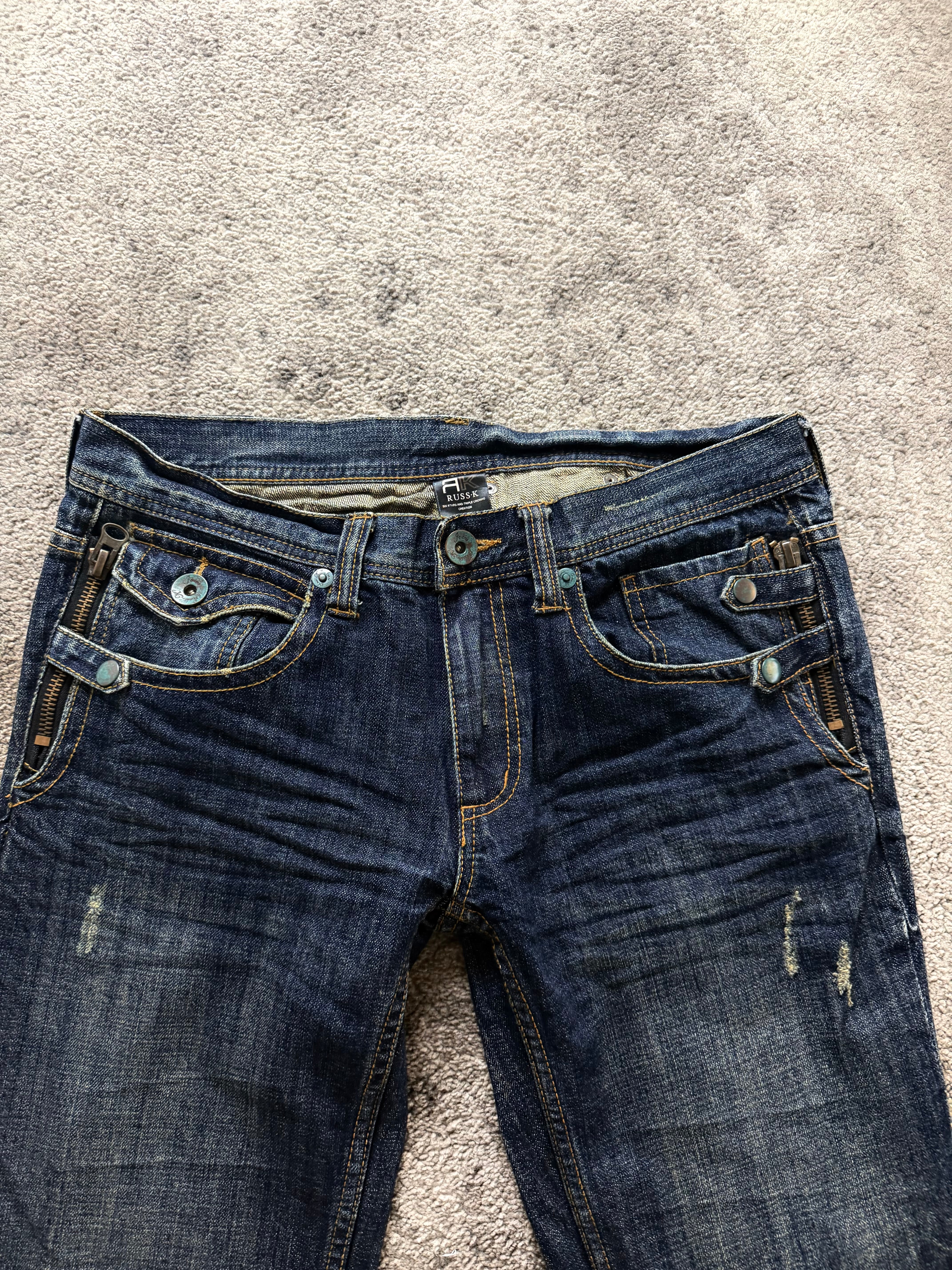 RUSS K “Dark Indigo Utility Fade Denim” Archive Piece – subtle chaos, hidden details.