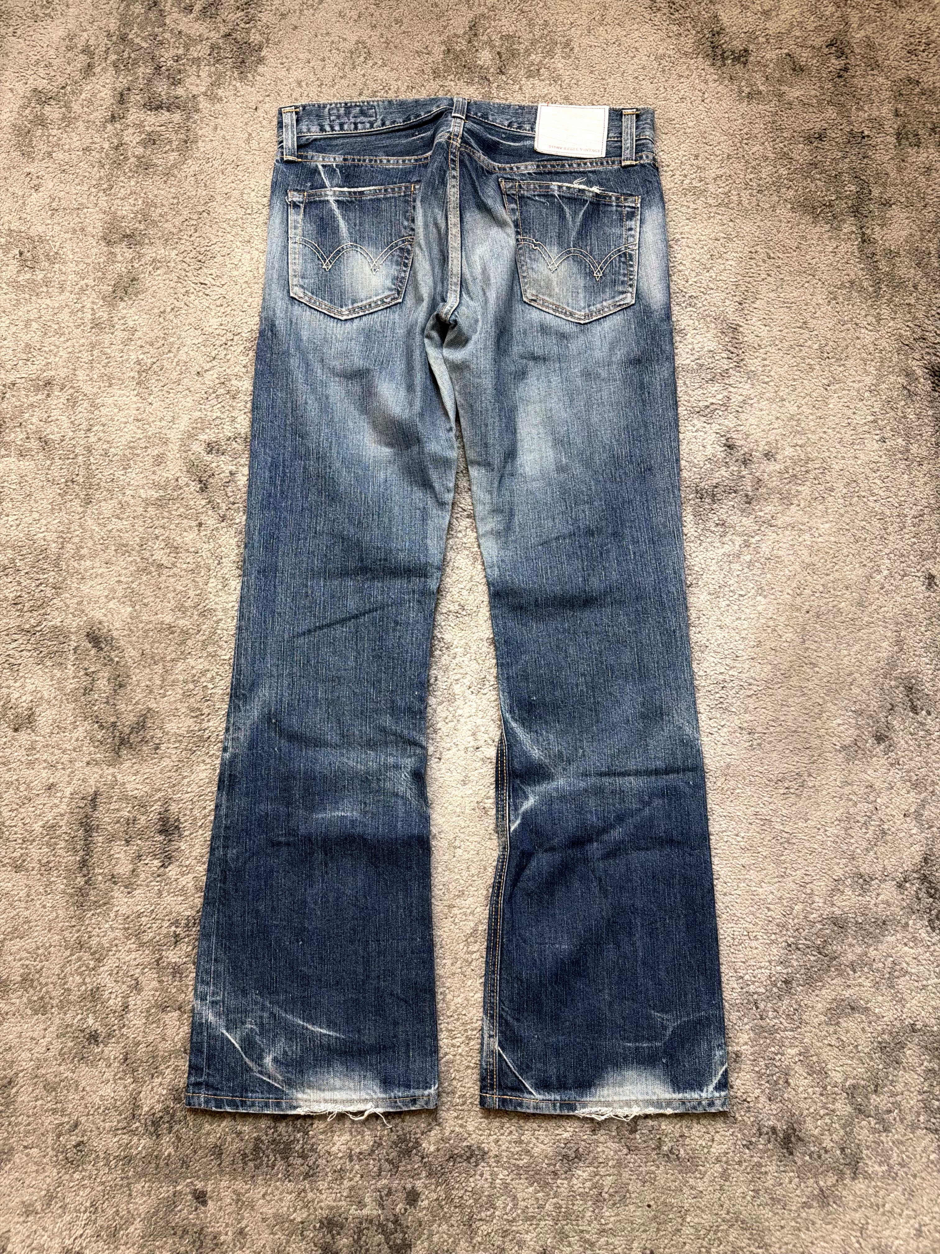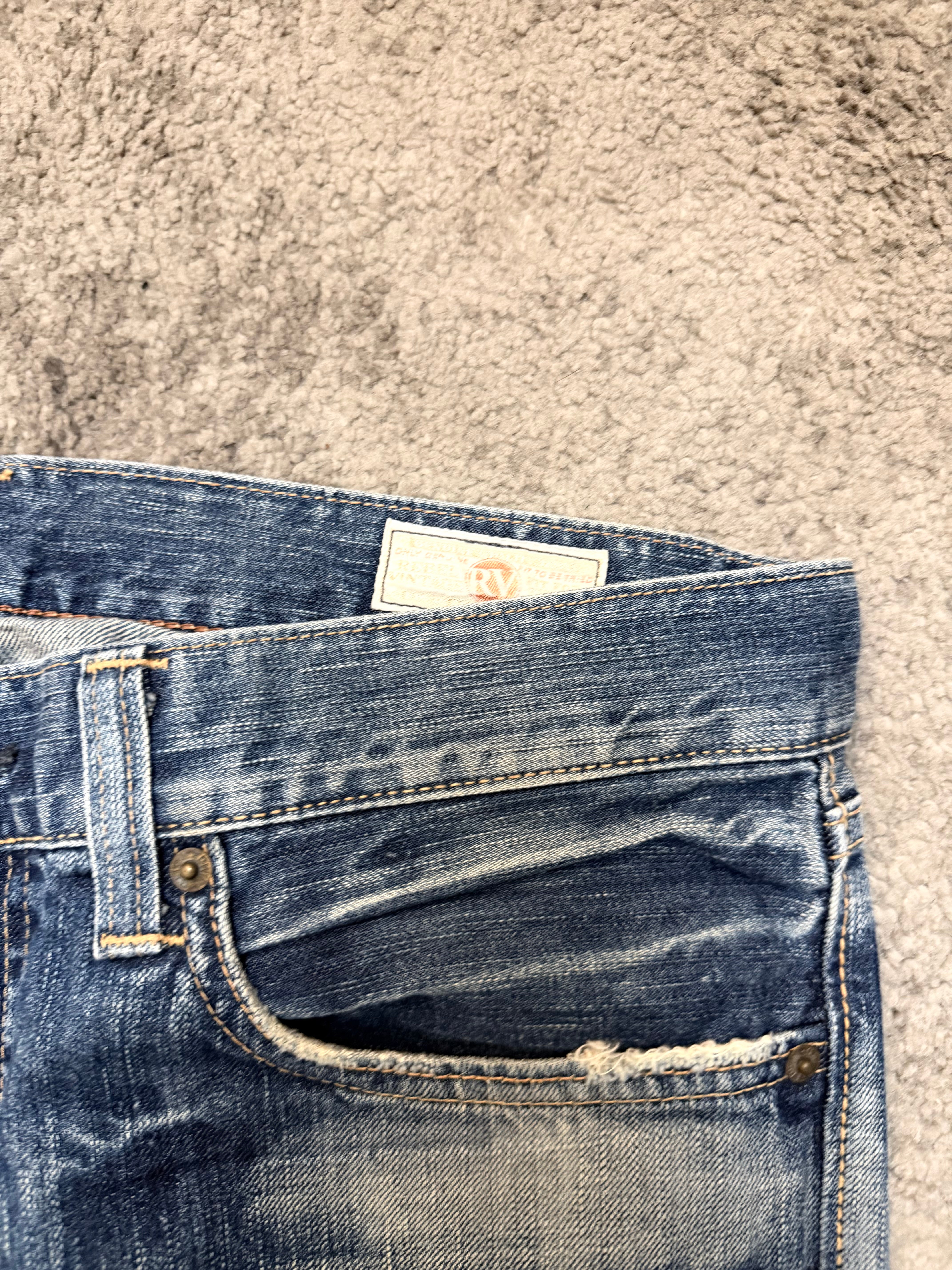 A pair that feels like it’s been lived in, not just worn. This vintage RV denim embodies that uniquely Japanese balance between minimalism and rebellion — the soft fades, frayed hems, and lived-in texture tell a story without needing to shout. Effortless, timeless, and raw.