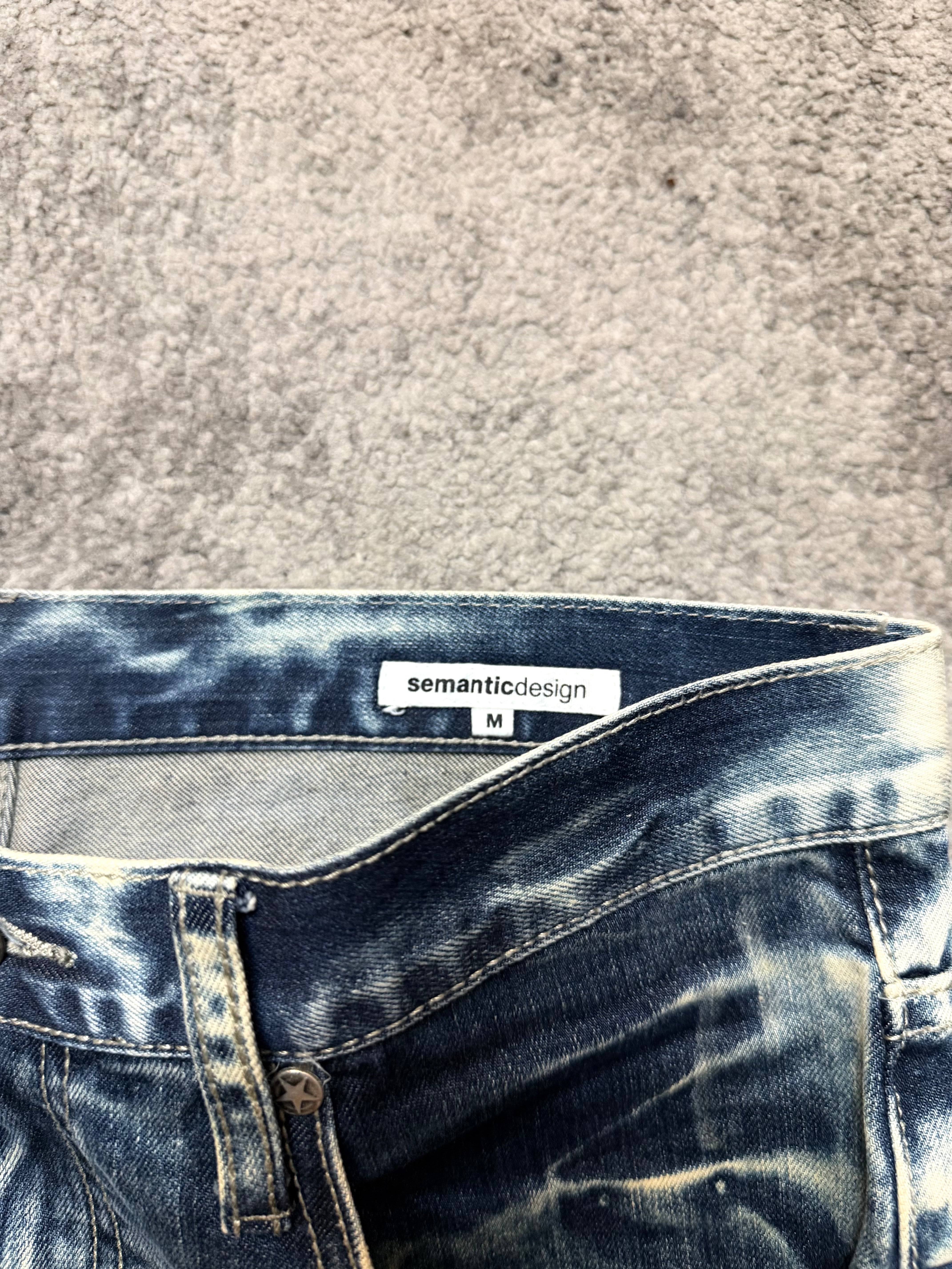 A rare pair of Japanese archive-style denim from semantic design, built with that wild, ghost-washed finish only early-2000s Japan could pull off. Size M, in great vintage condition with natural fading, soft texture, and no structural flaws.