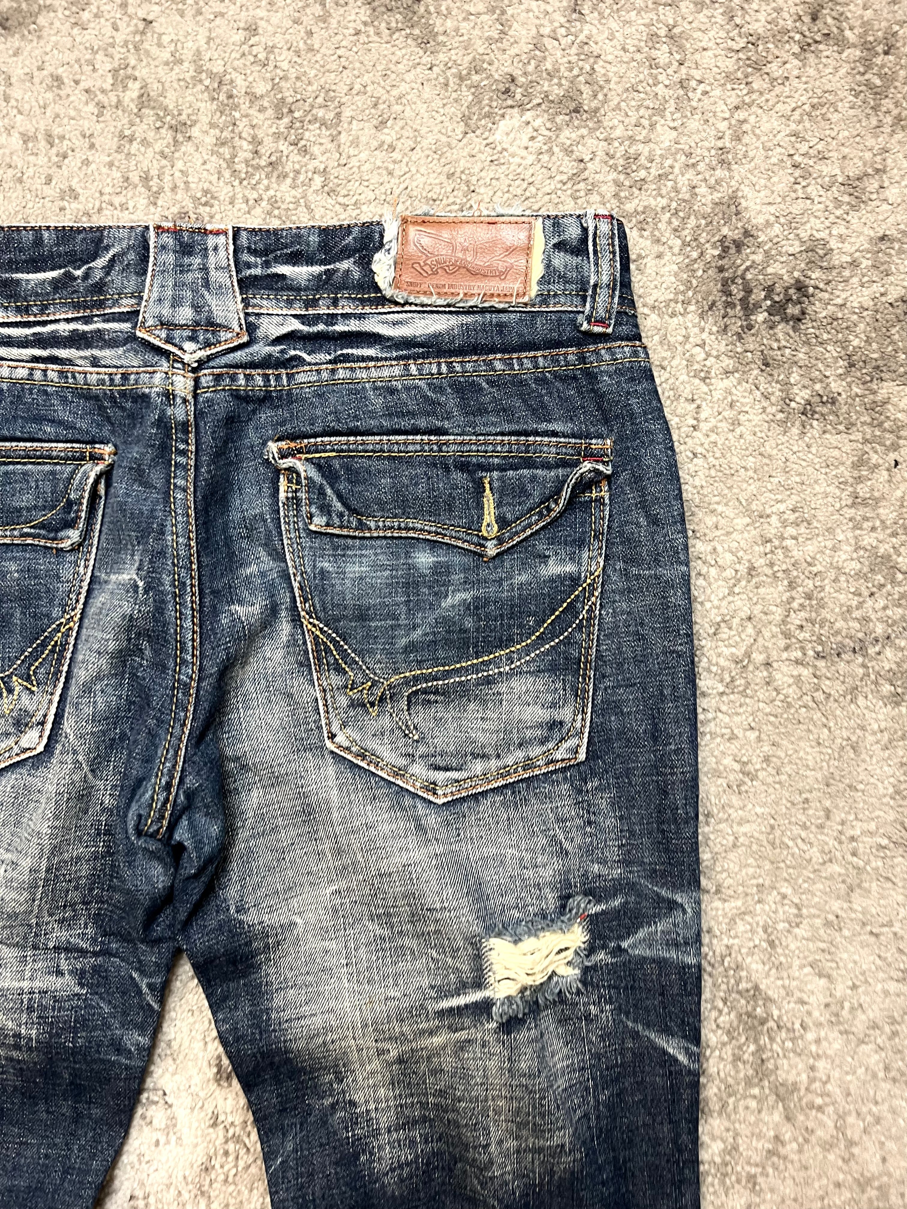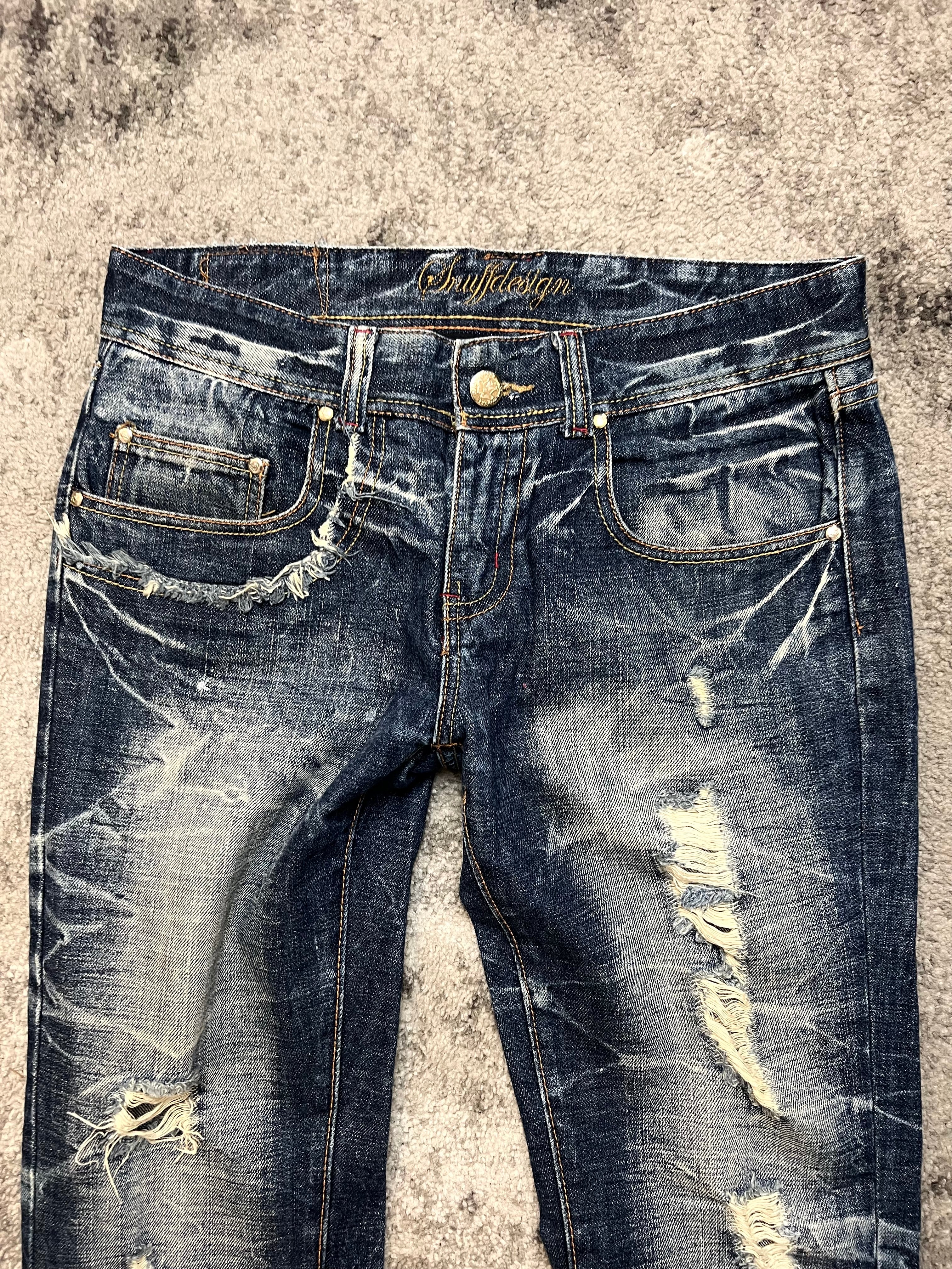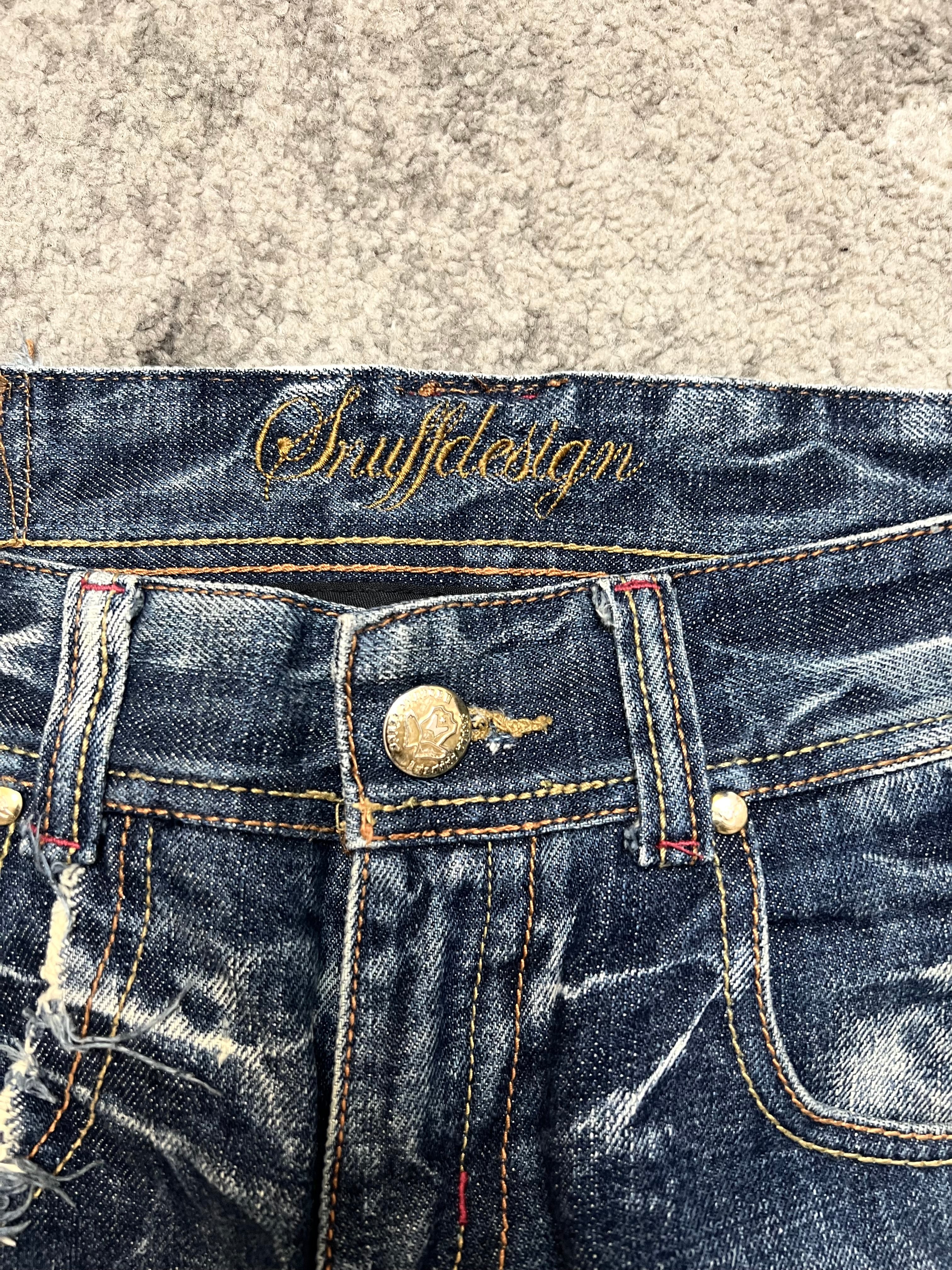 SNUFF "DISTRESSED SOUL" DENIM Size: fits like M (cropped) Cond.: 9/10 (might have some signs of usage) Measurements: Length... Lesen Sie mehr