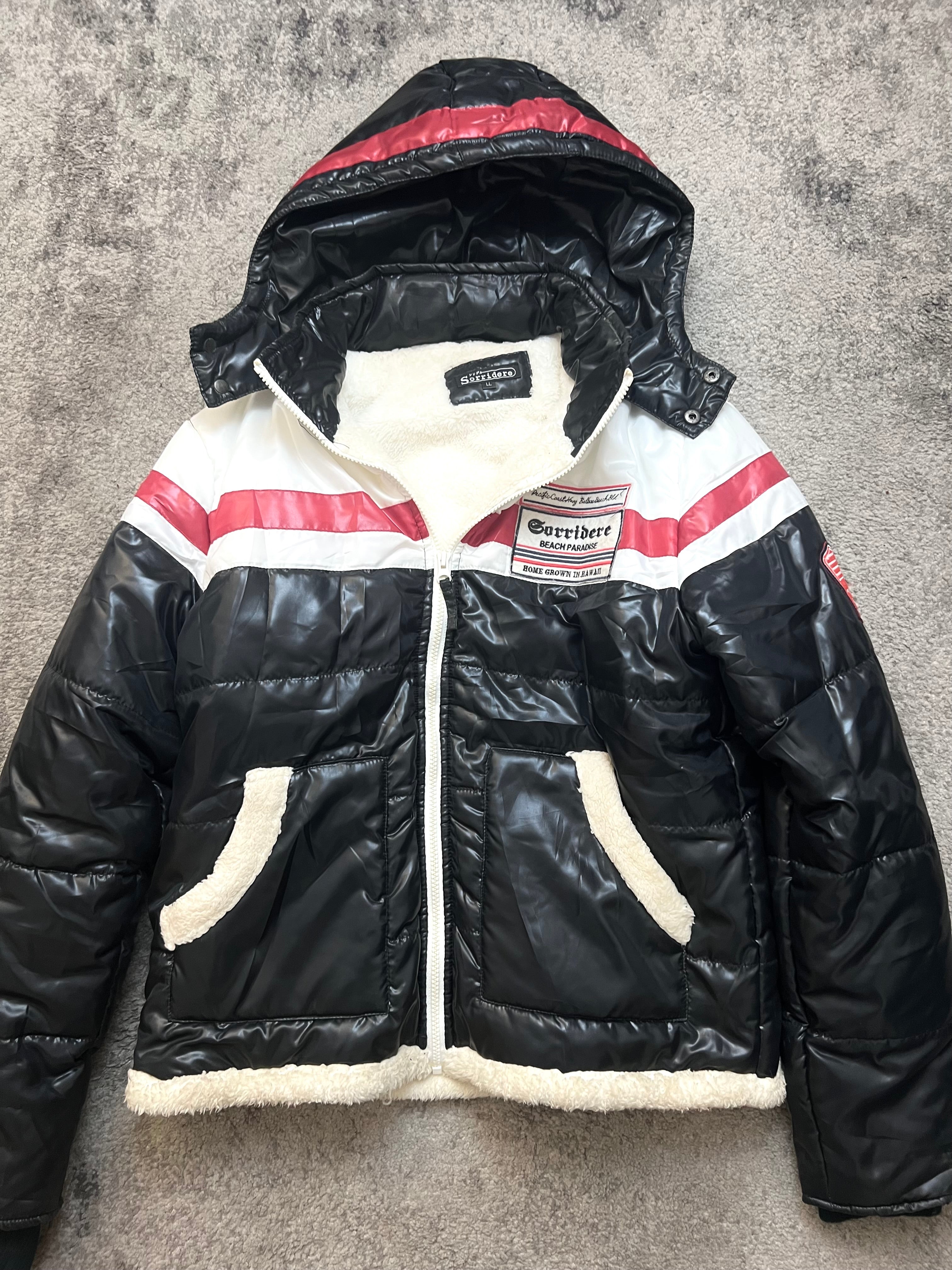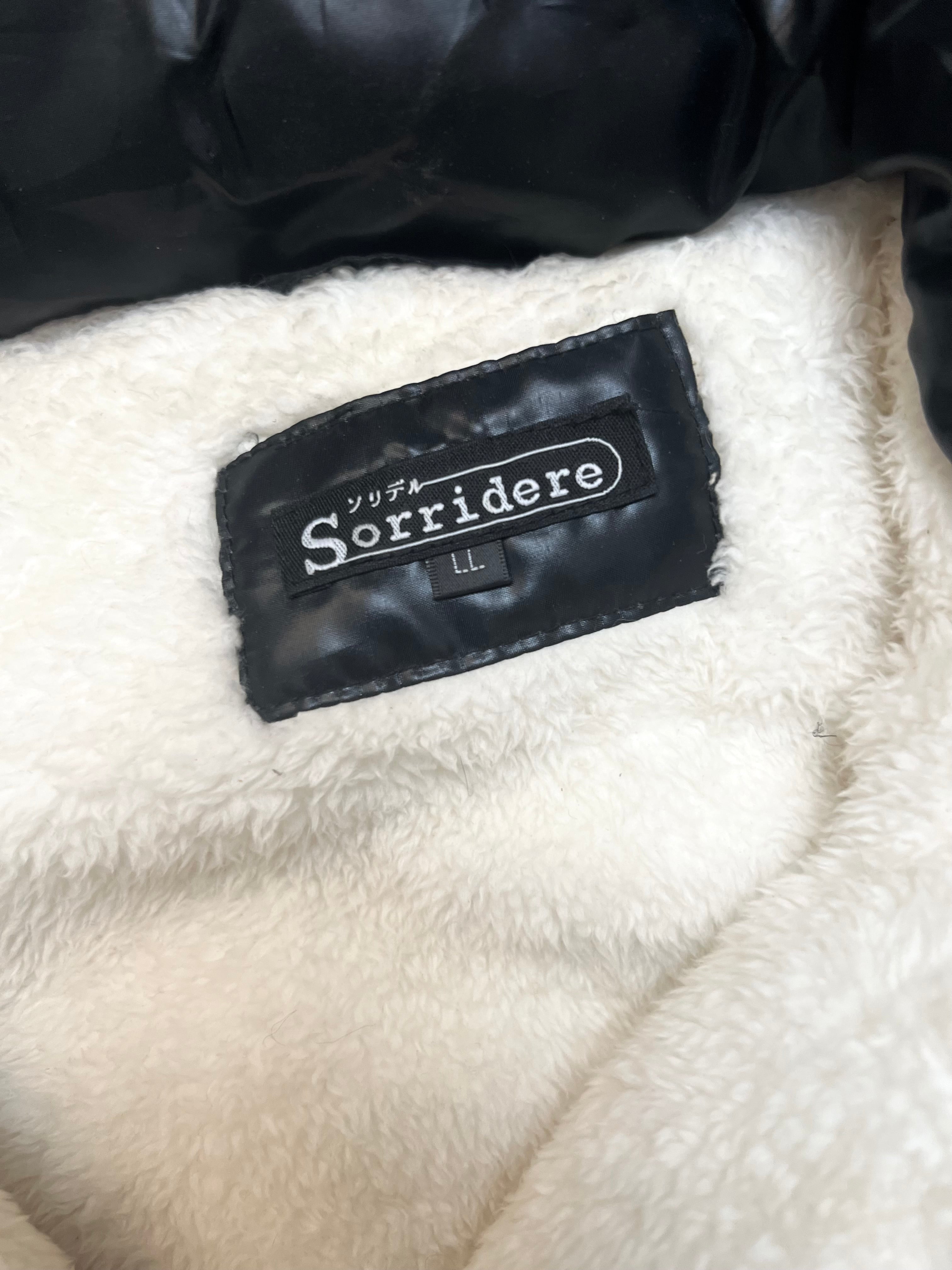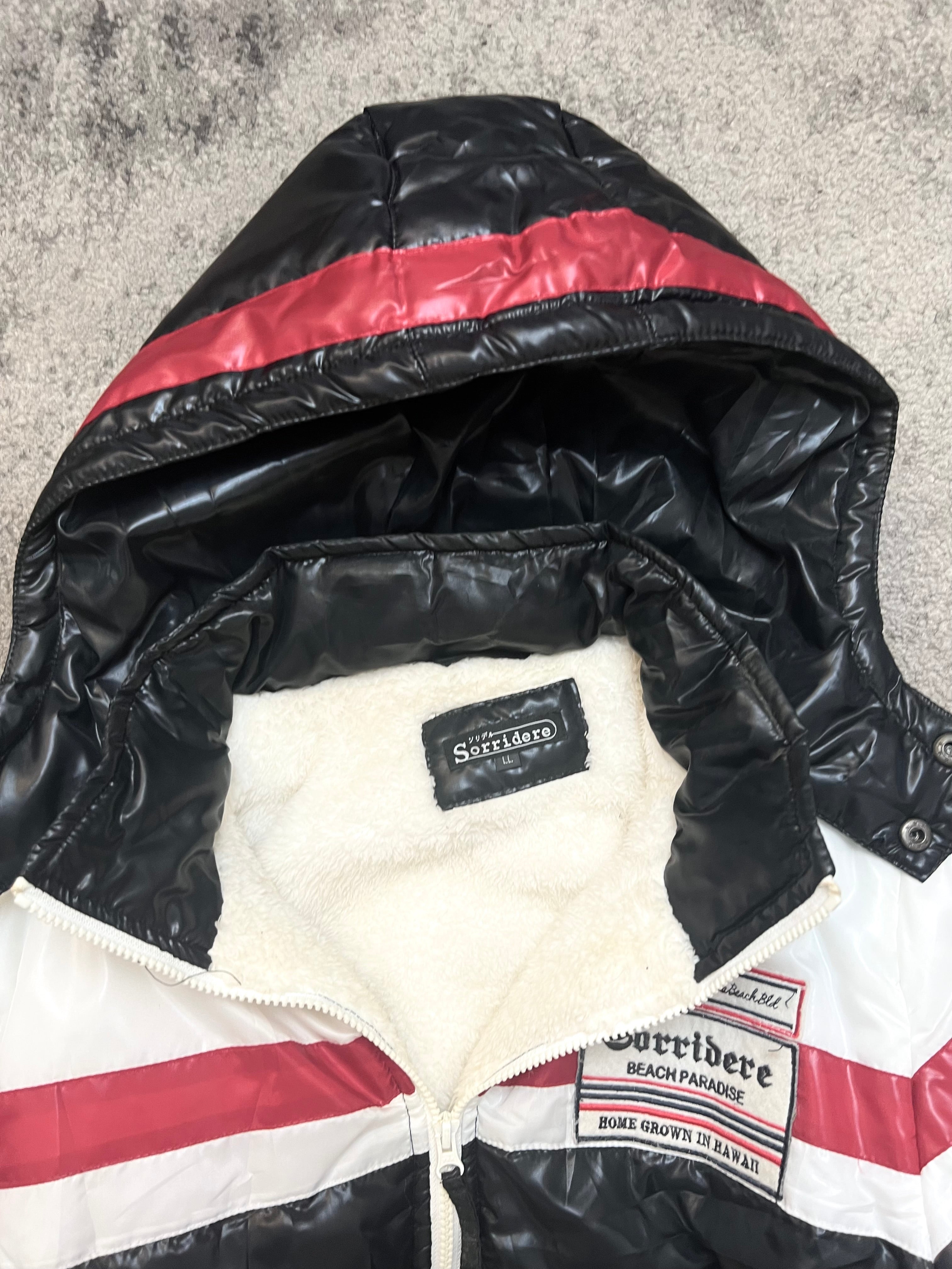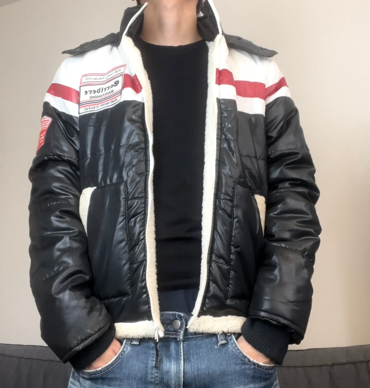 A bold archive piece from SORRIDERE Japan, merging 2000s racing aesthetics with Tokyo street energy. This jacket features a glossy black and white shell accented by red stripes and detailed embroidery — a perfect balance between rebellion and nostalgia.