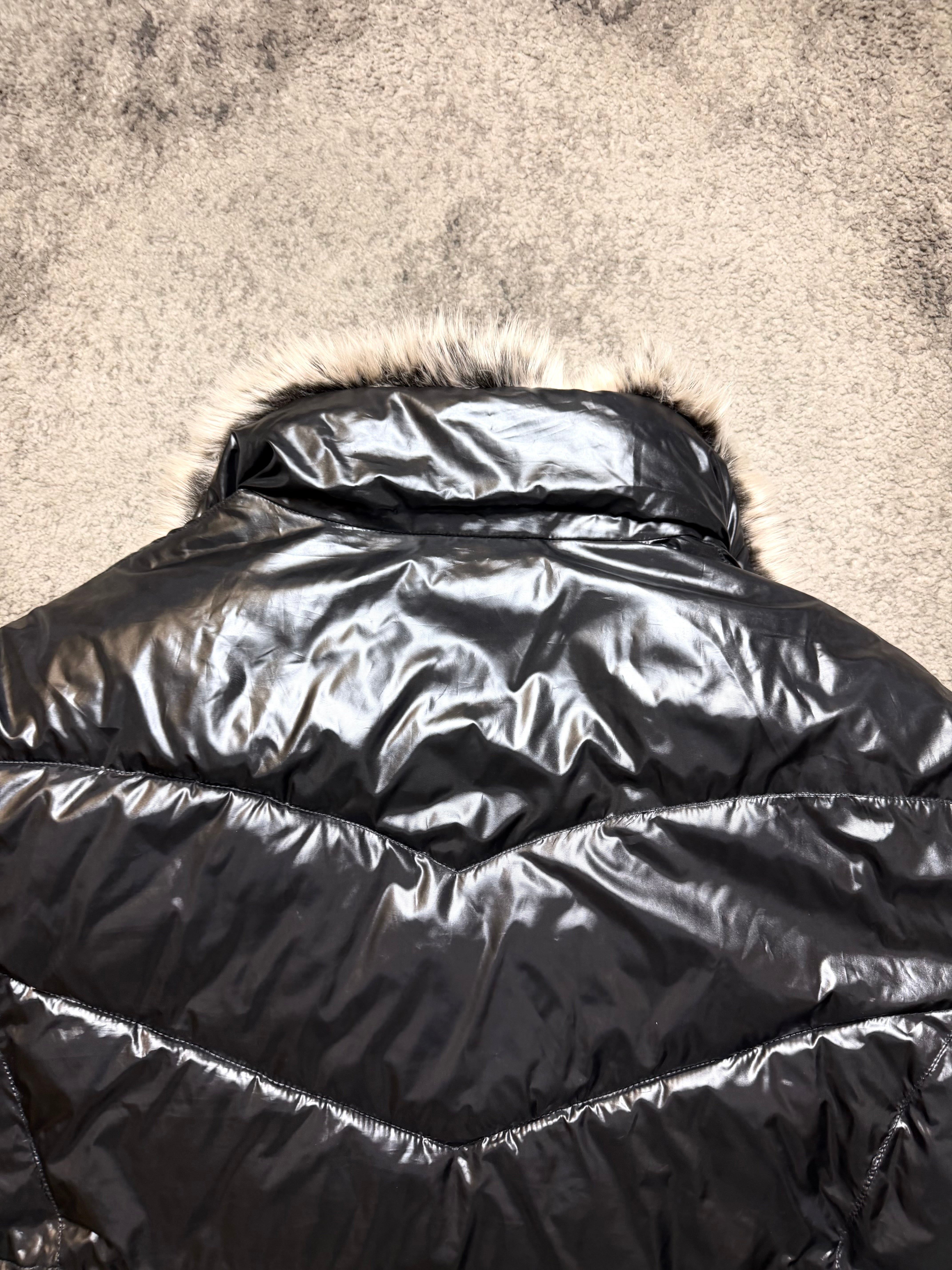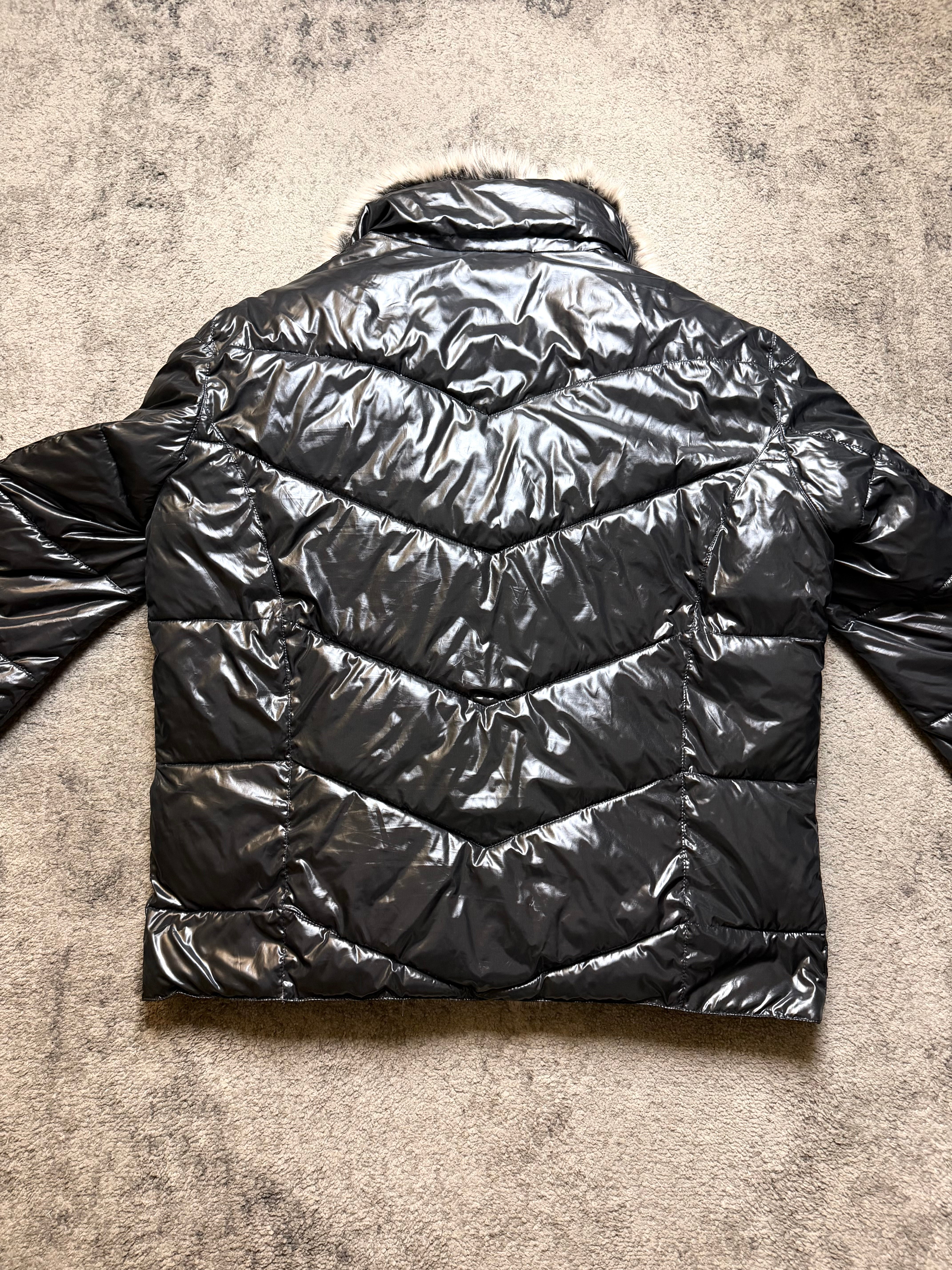Details: Chevron-style quilting, full zip closure, fur-trim collar and cuffs, subtle utilitarian pockets, sleek archive silhouette.