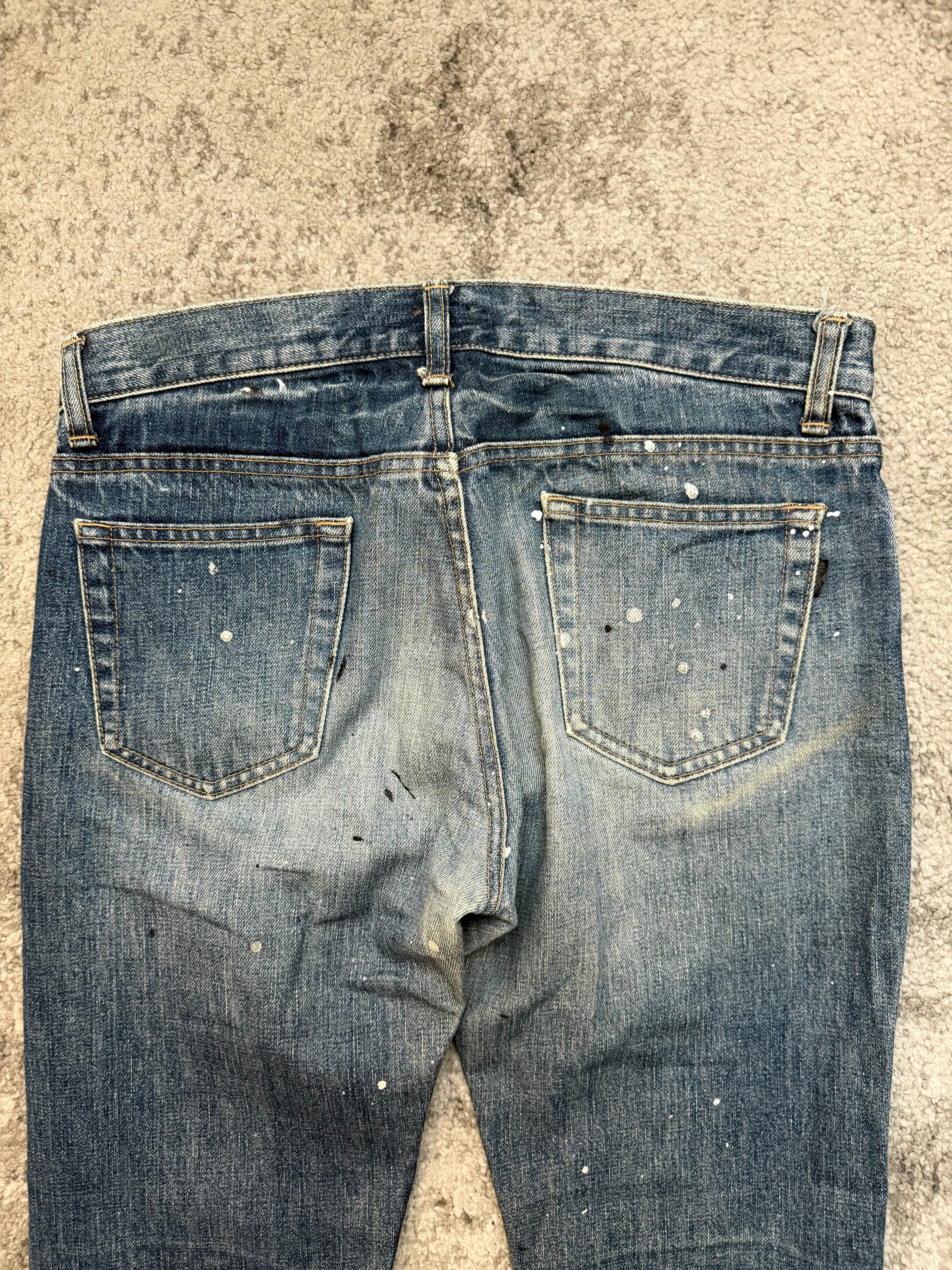 Condition: Pre-loved with authentic fading and scattered paint splatter. Gentle whiskering and natural creases throughout. No damage – only attitude.