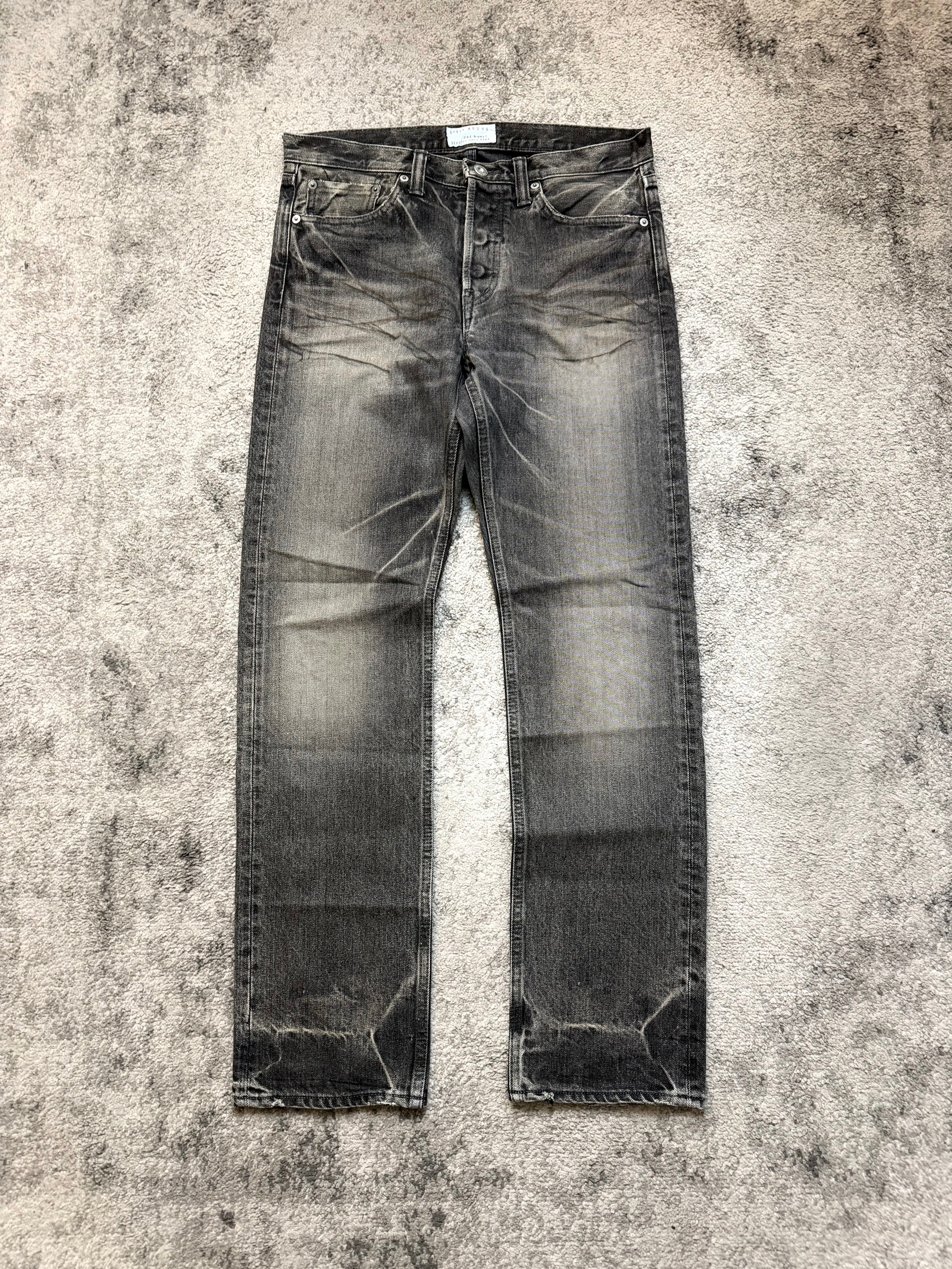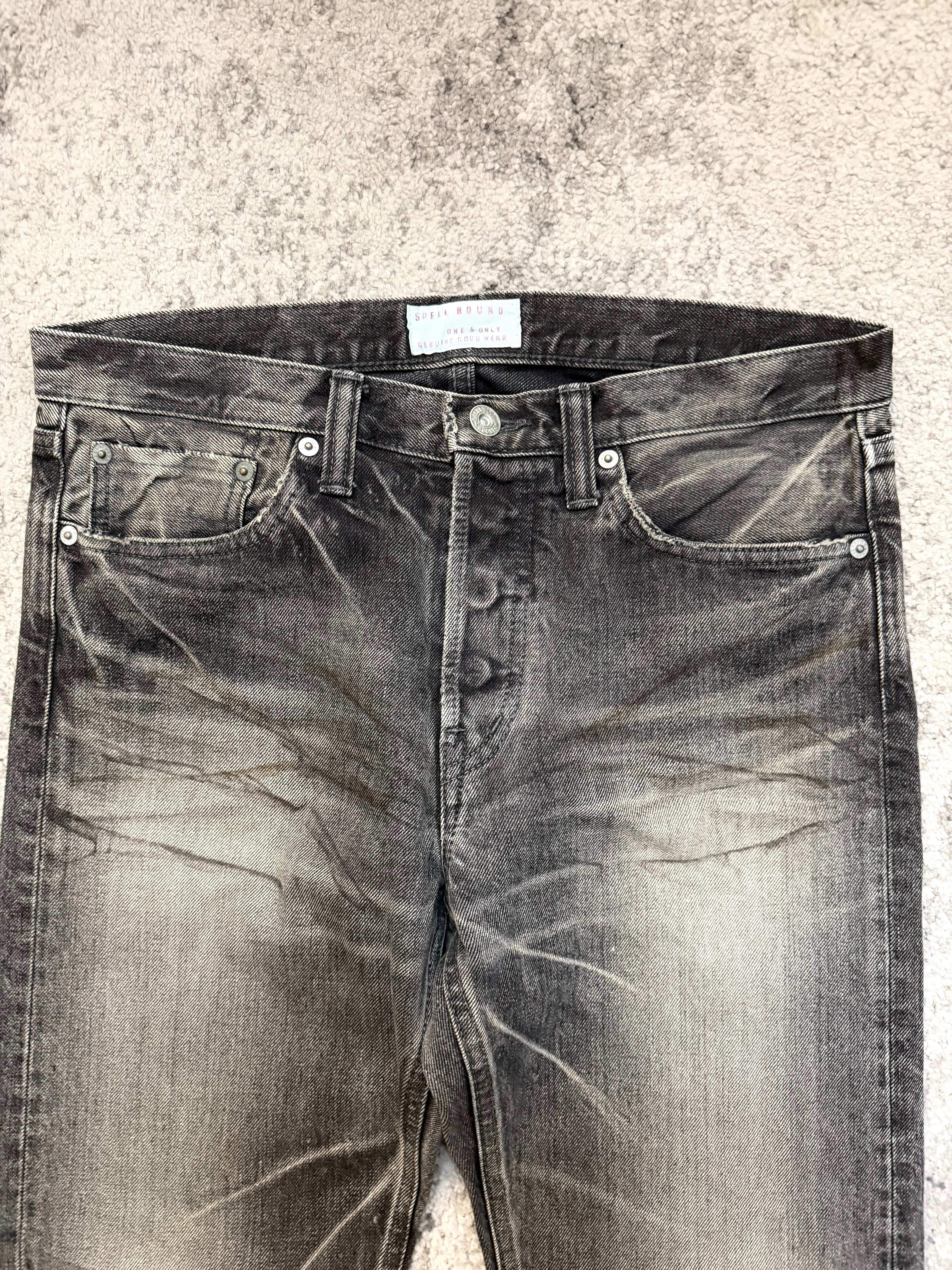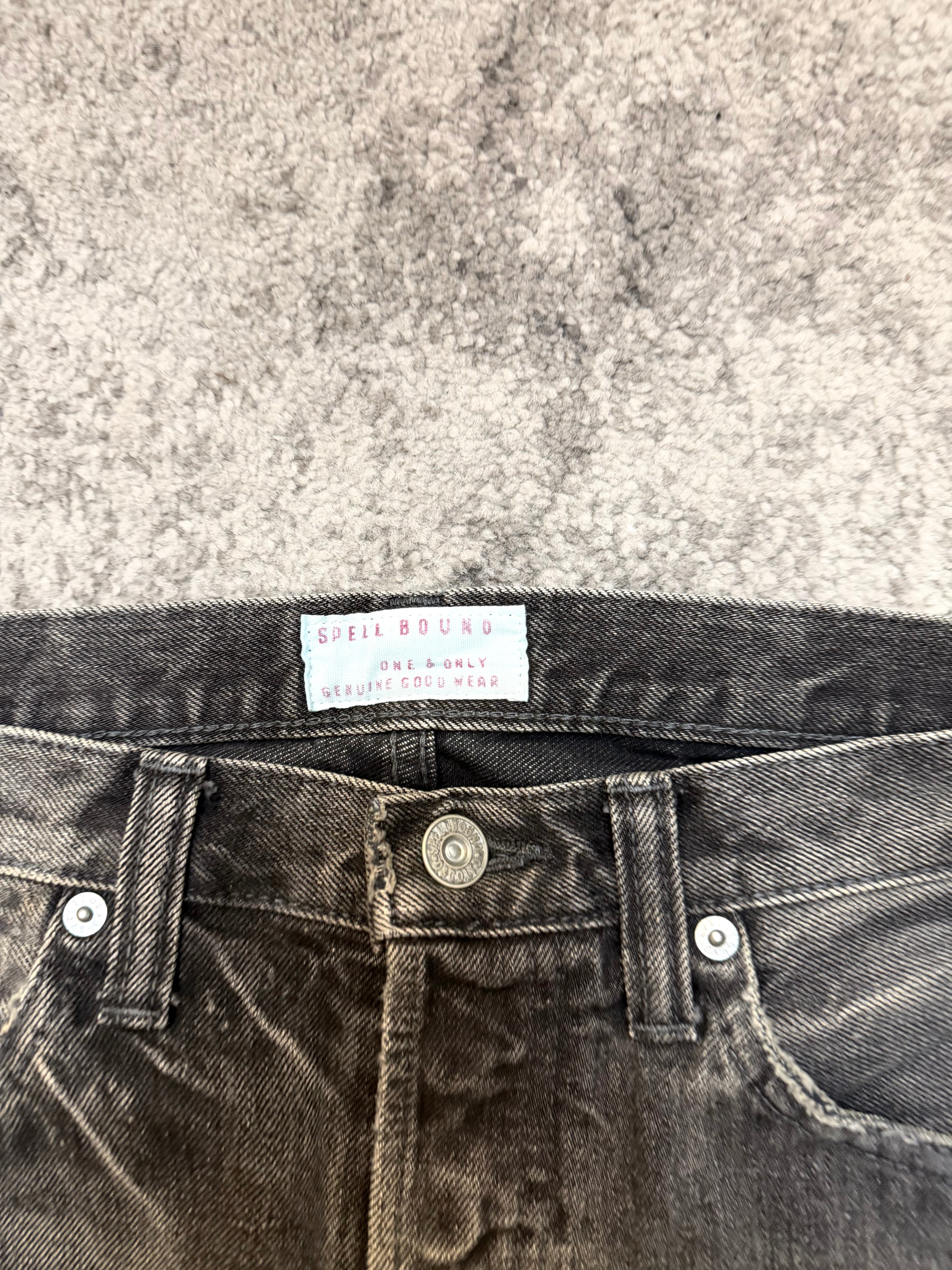 From SPELLBOUND’s archive-inspired collection, these jeans embody the minimal, shadowed aesthetic that defined the golden age of Japanese denim. The ashy grey wash with natural fading creates a subtle gradient — industrial yet refined, evoking the soft decay of vintage fabric.