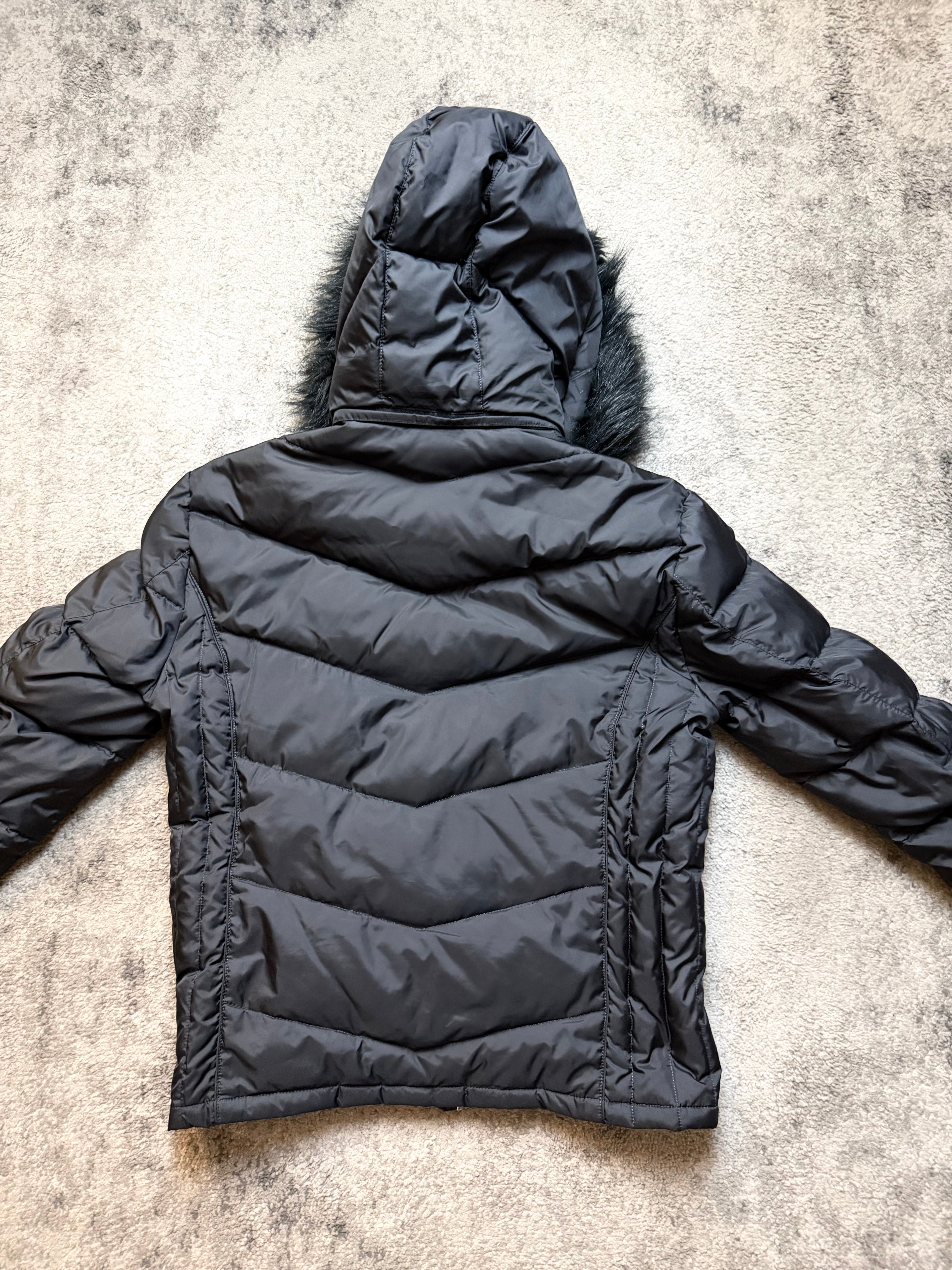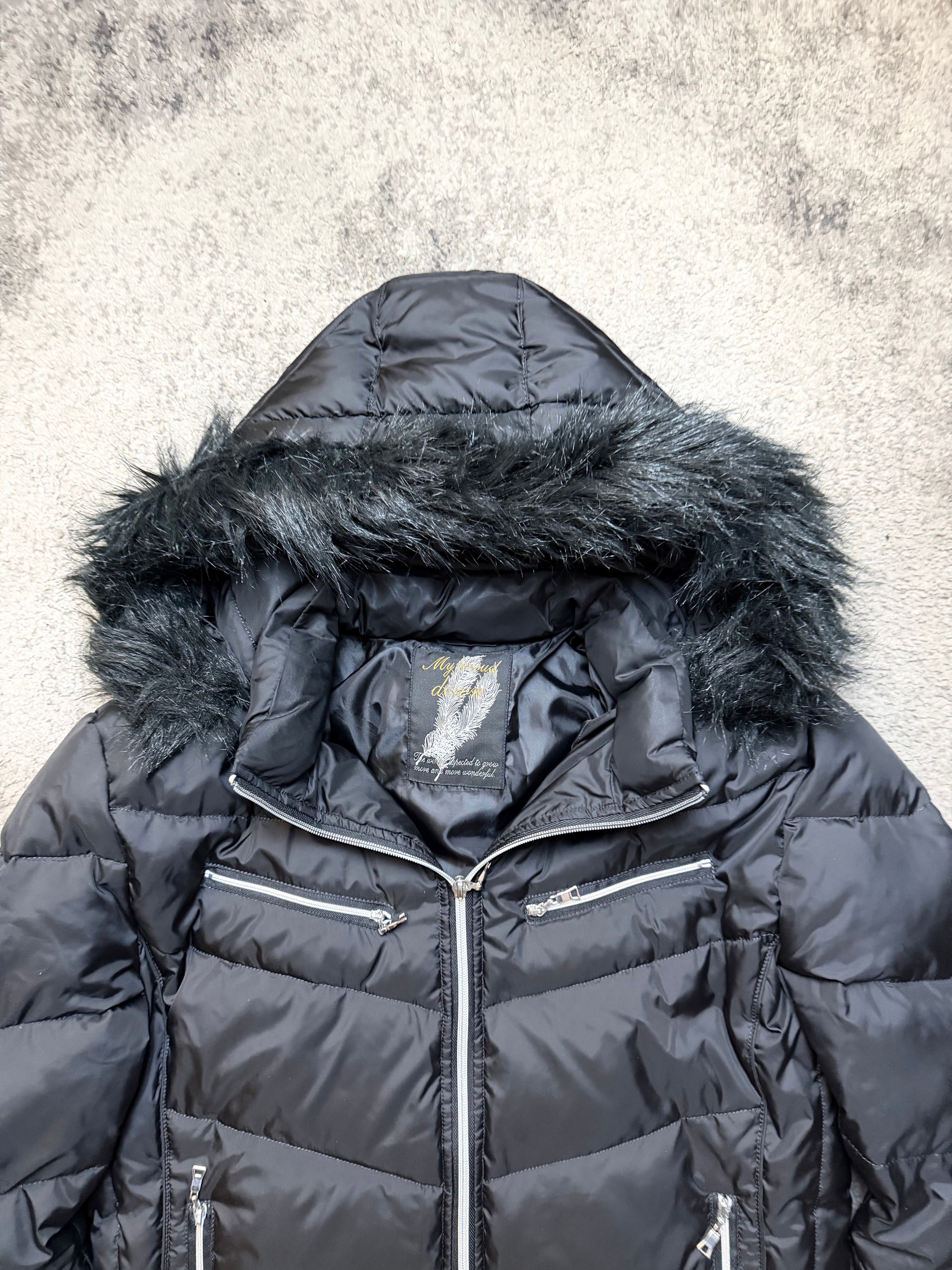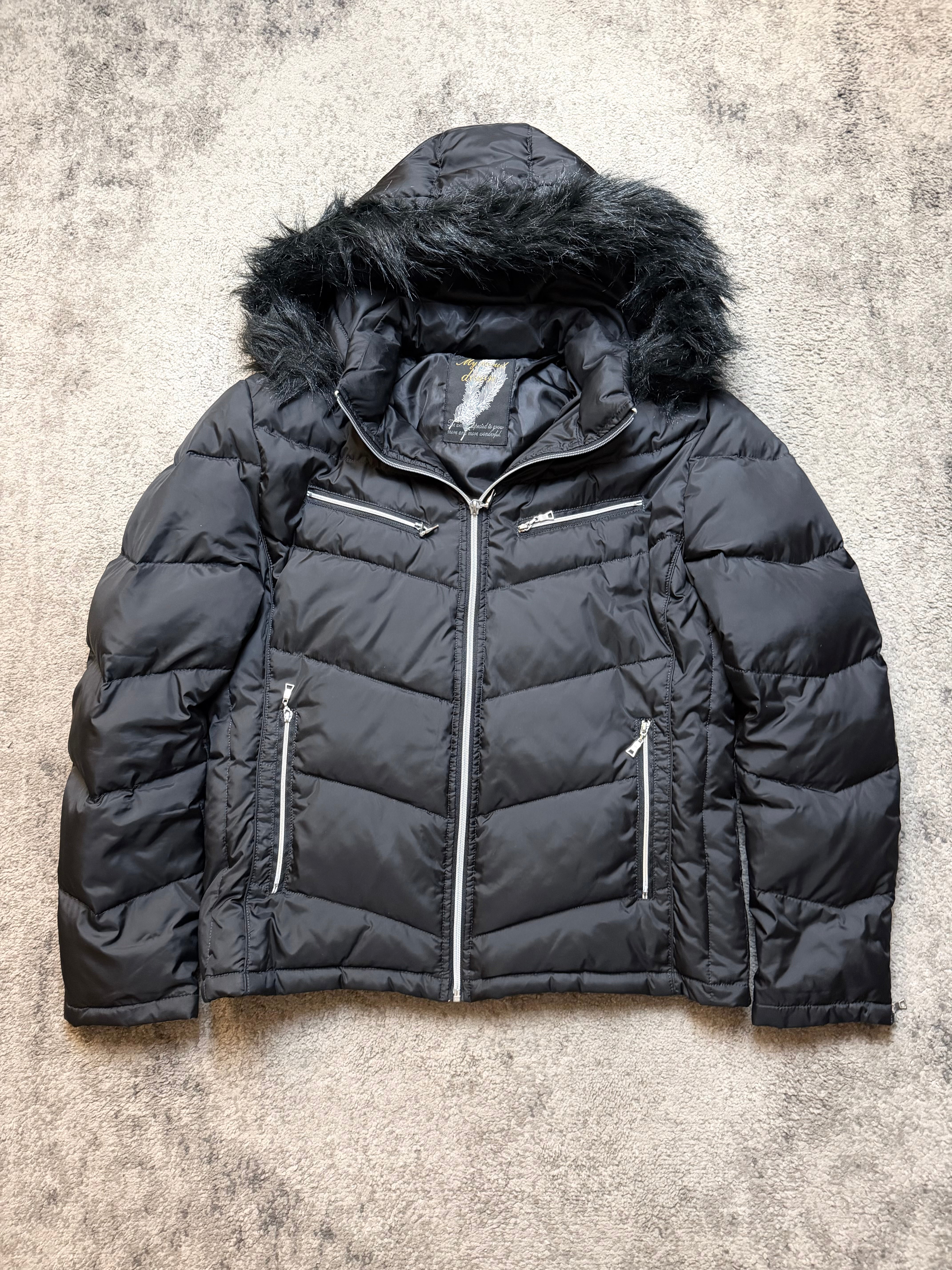 A sharp, winter-ready piece from Takeo Kikuchi—crafted with that signature Japanese precision. The jacket features a deep black nylon shell with a subtle matte sheen, structured quilting, and a detachable faux-fur hood trim for that unmistakable Tokyo-night attitude.