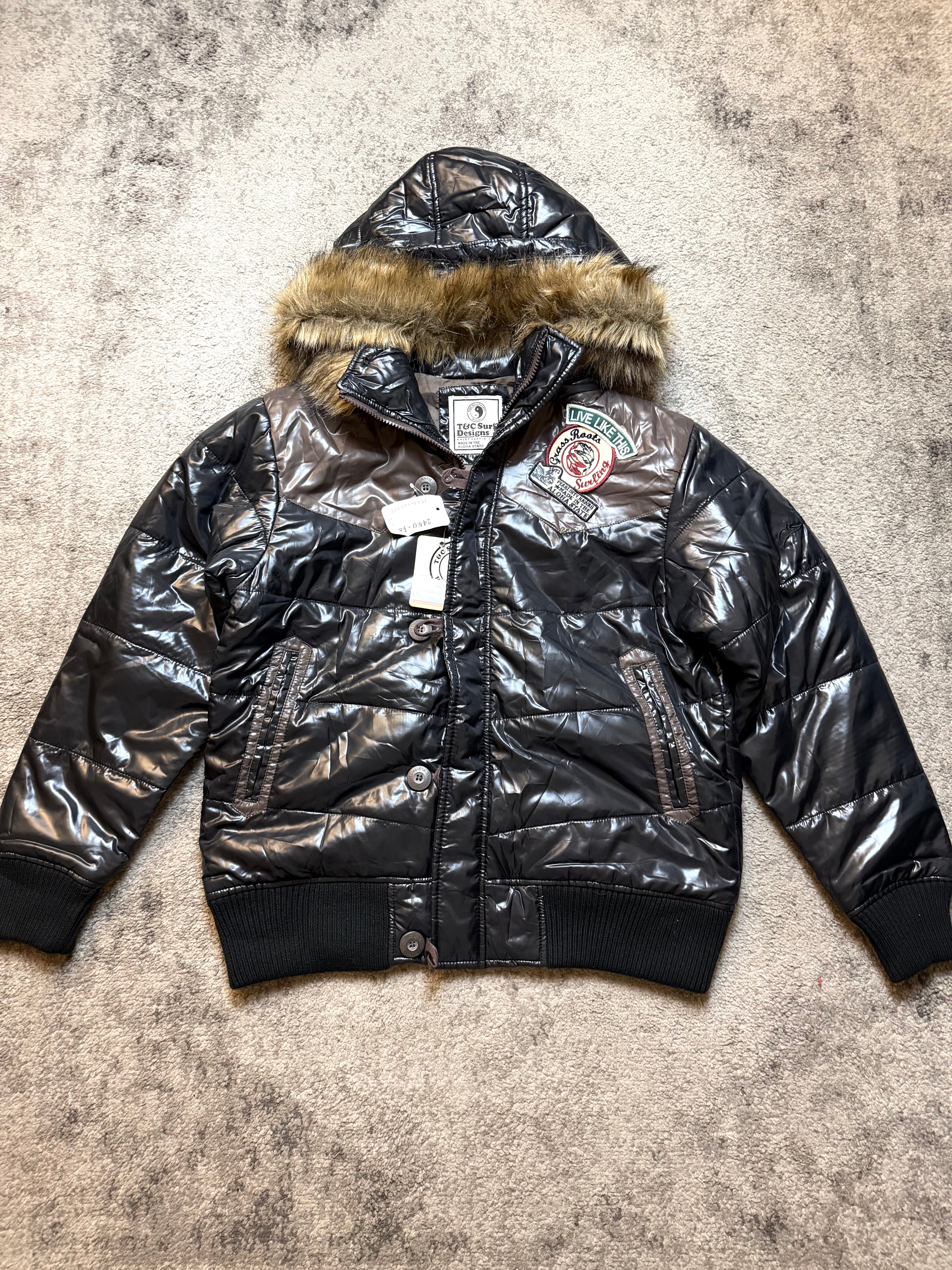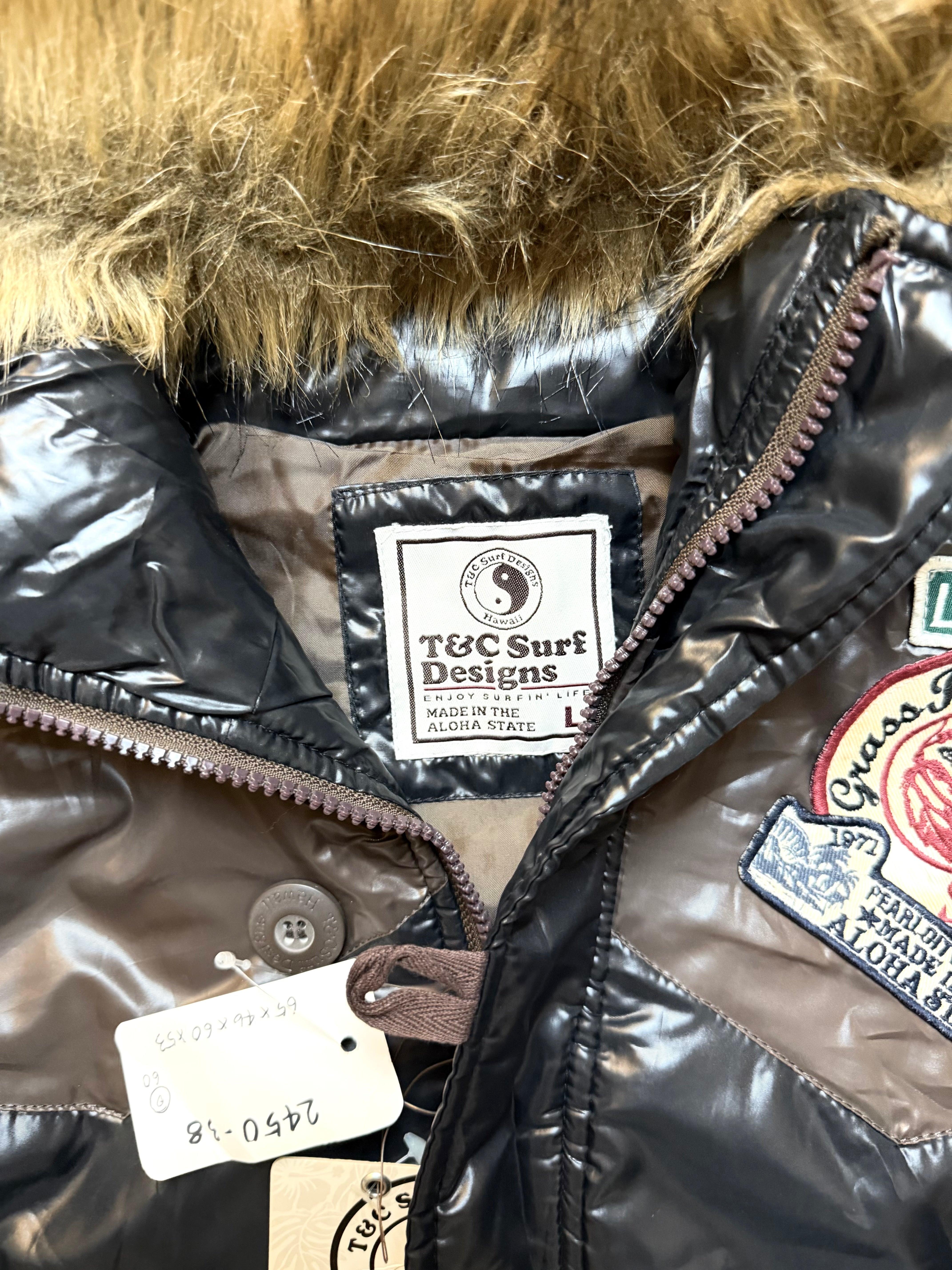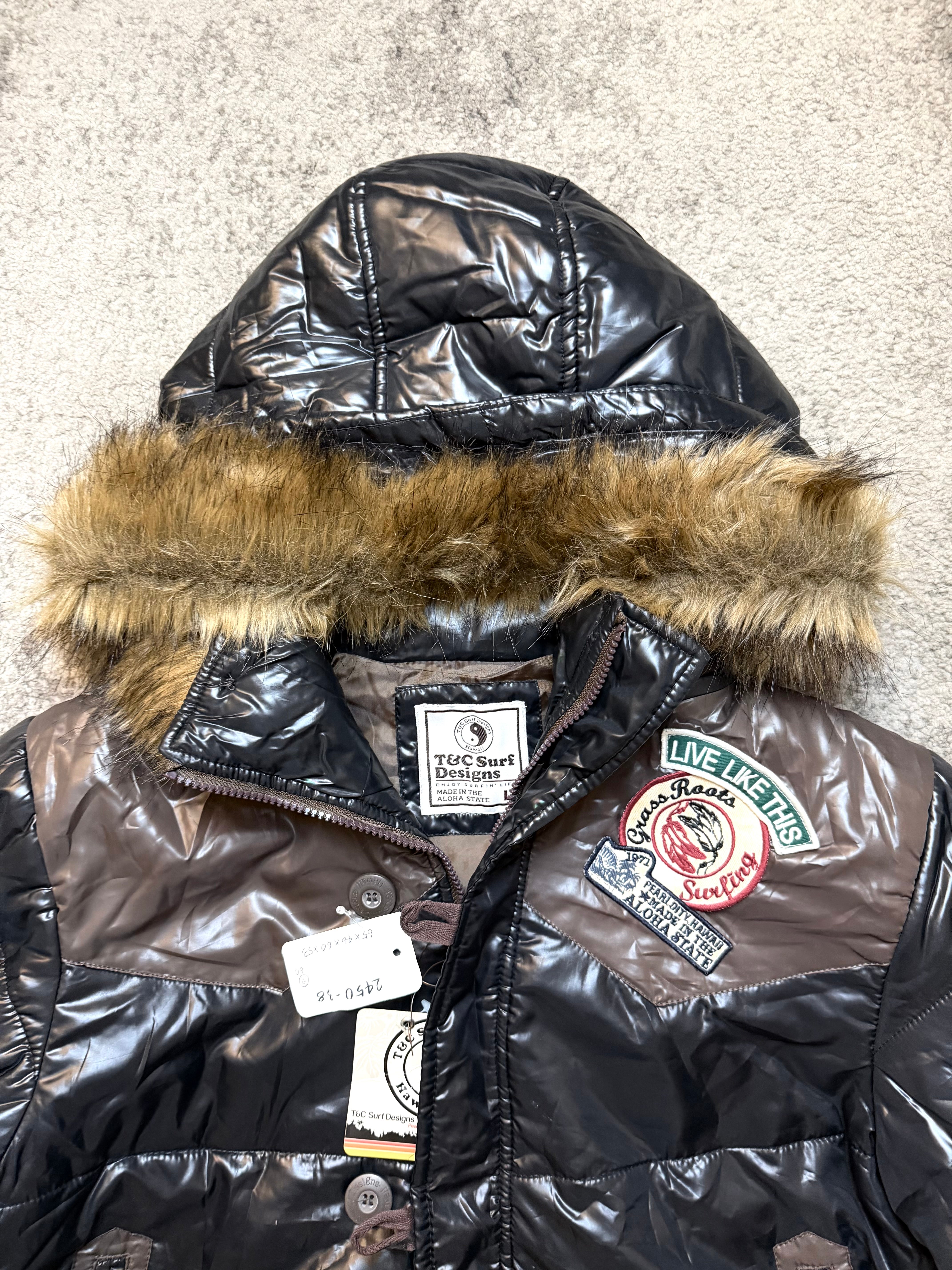 A bold, archive-leaning winter piece straight out of Japan’s golden era of street outerwear. This T&C SURF puffer jacket brings that unmistakable shiny, high-impact finish—mixing Y2K surf culture with raw Tokyo edge.