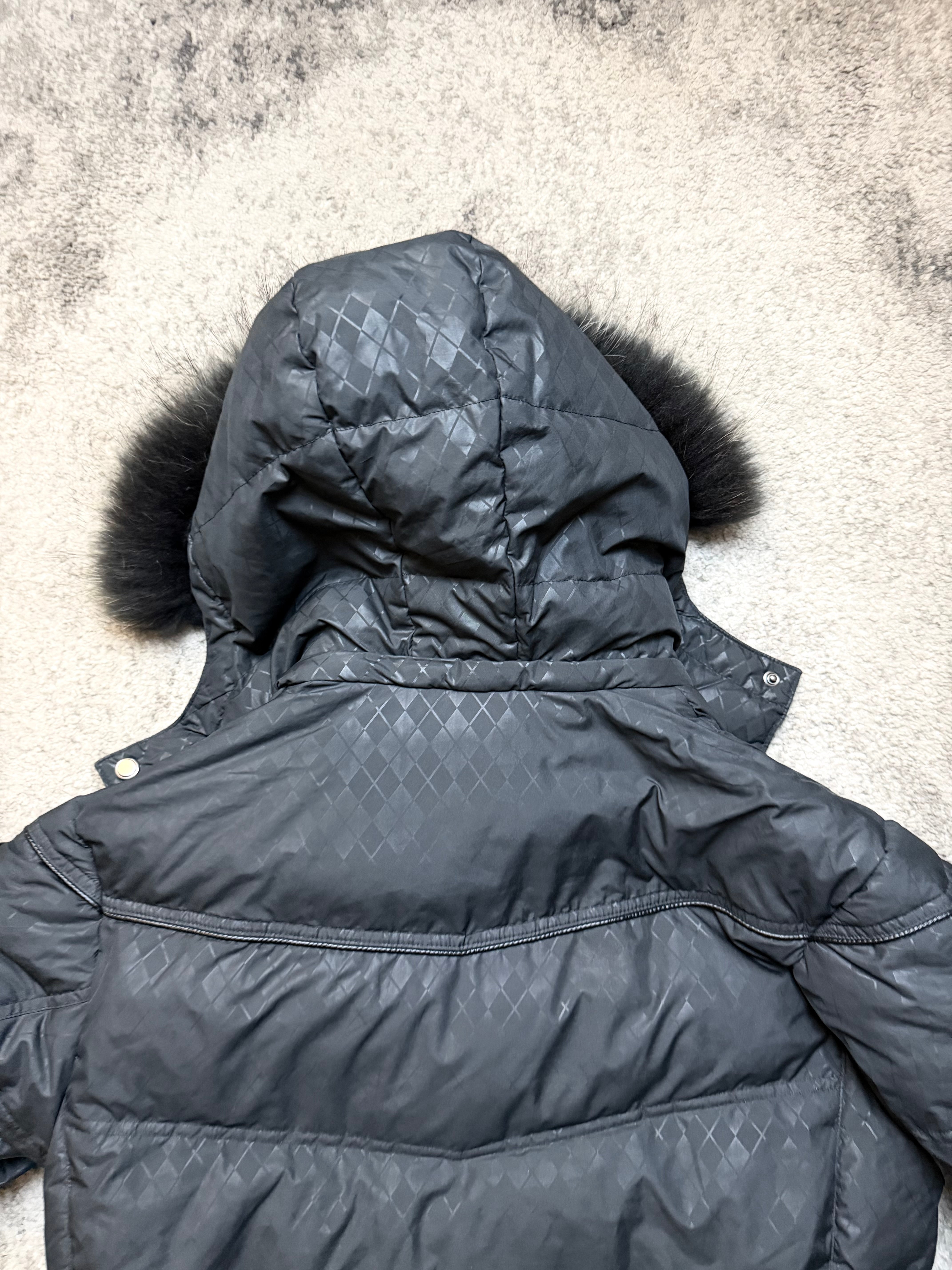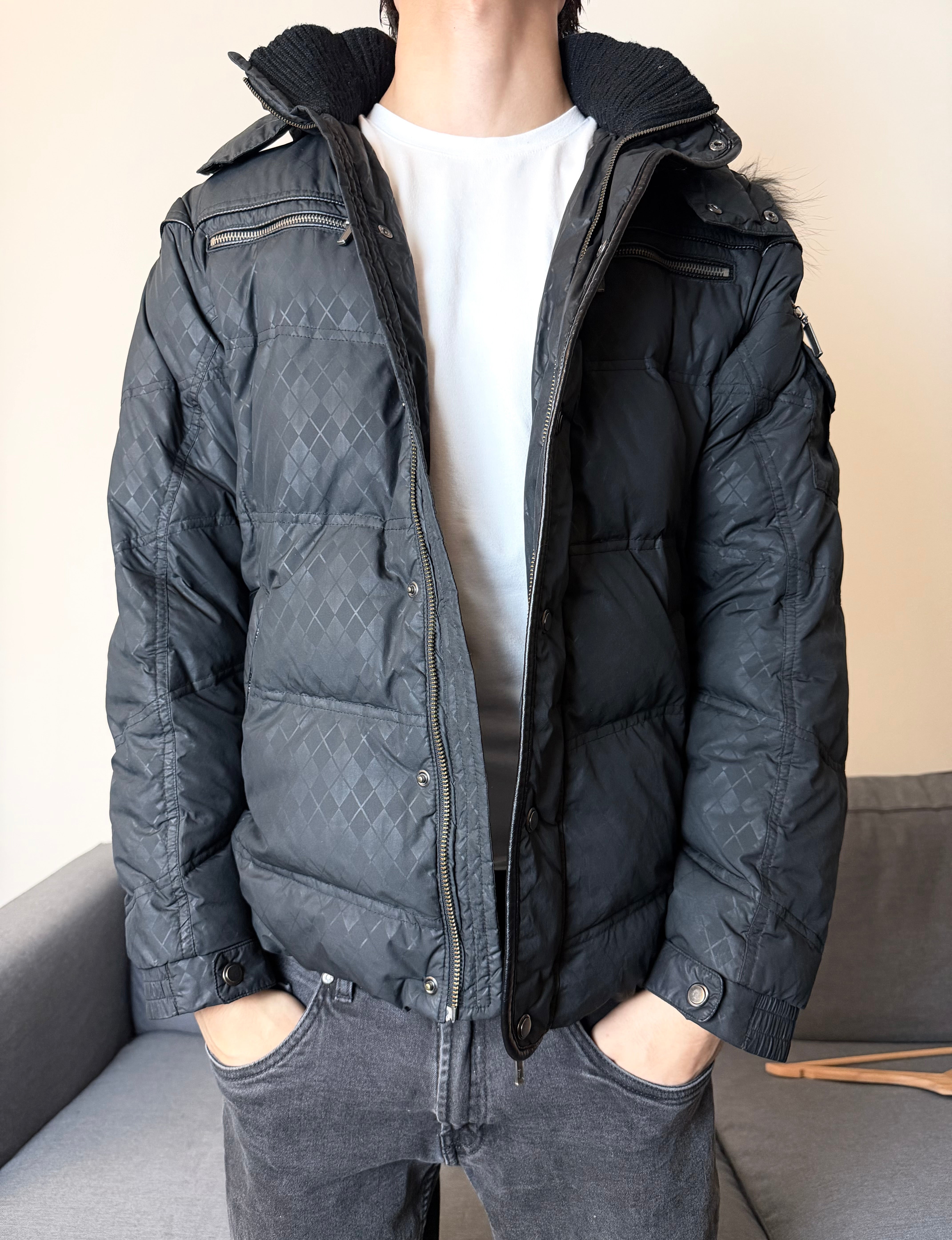 Step into that late-2000s Tokyo edge with this TAKEO KIKUCHI padded jacket — a piece that feels straight out of a forgotten runway photo, where luxury meets street grit. The subtle tonal diamond pattern gives the black shell a quiet complexity, almost like a coded texture only real archive heads notice.