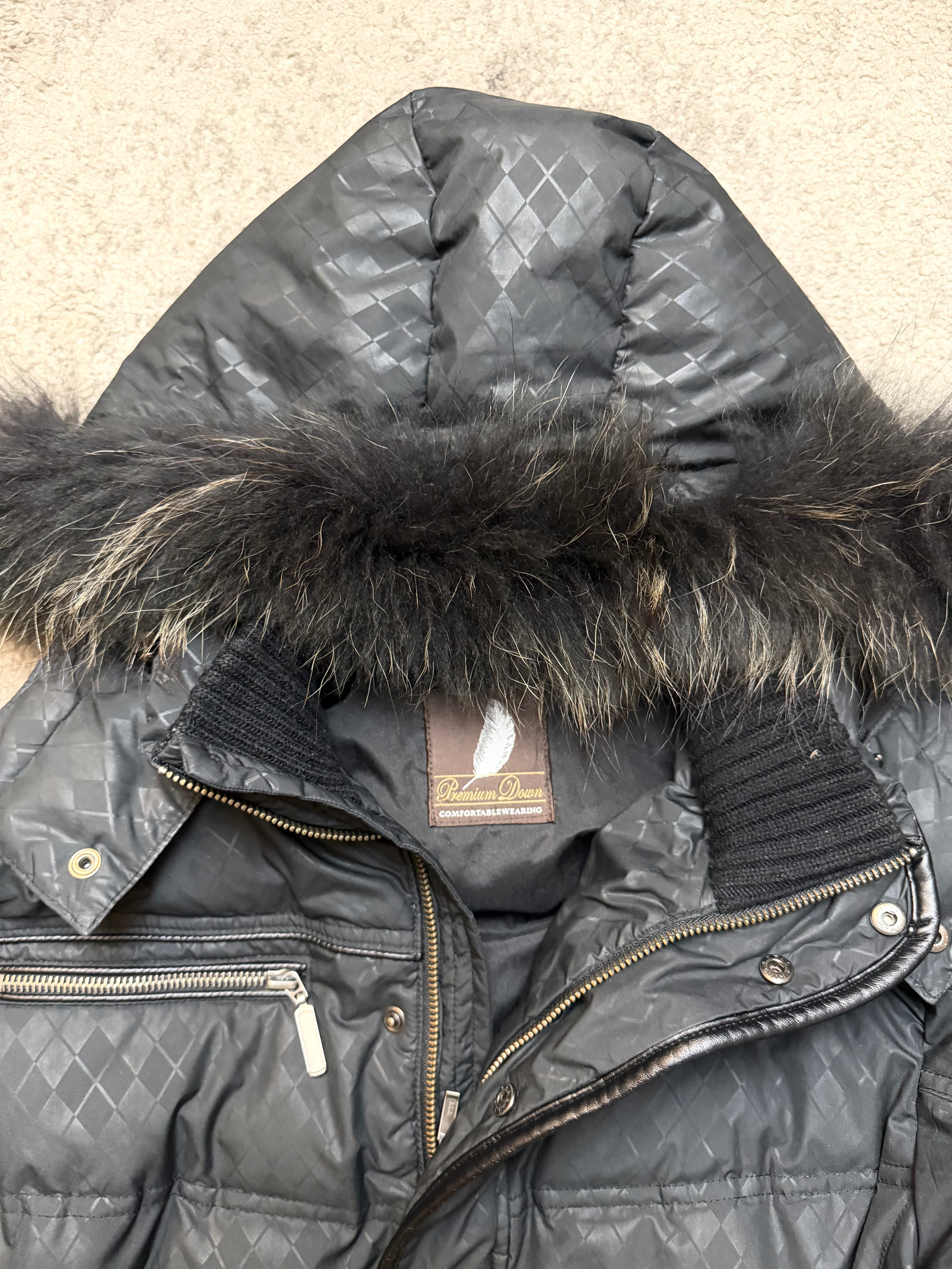 The jacket comes in excellent condition, with the fabric still holding its deep sheen and the structure perfectly intact. The detachable faux-fur hood, metal hardware, and multi-zip detailing bring that iconic Japanese hybrid of utility and elegance. Thick insulation, ribbed inner cuffs, and a protective high collar keep warmth locked in — built for winter nights, city lights, and long walks with headphones on.