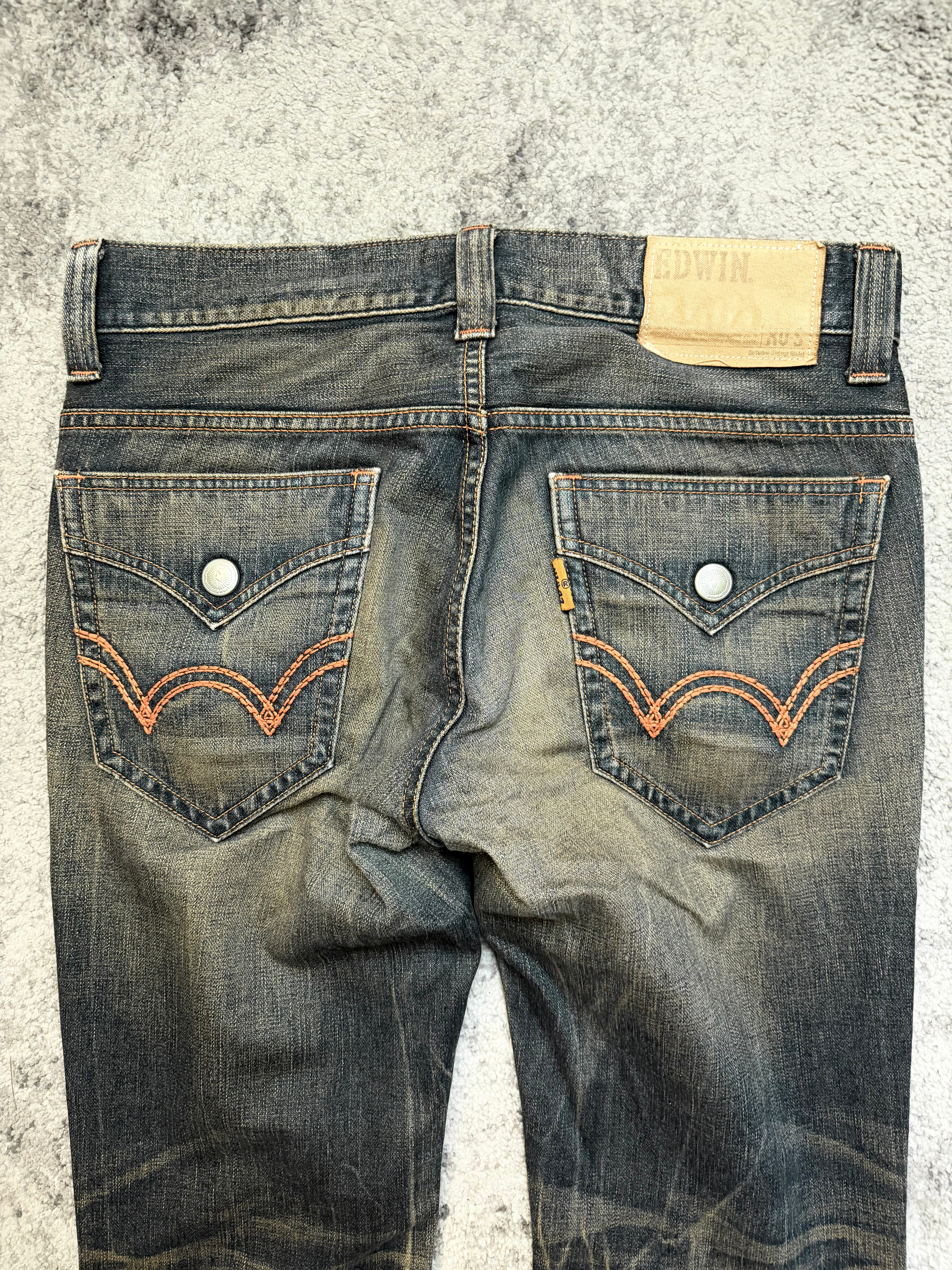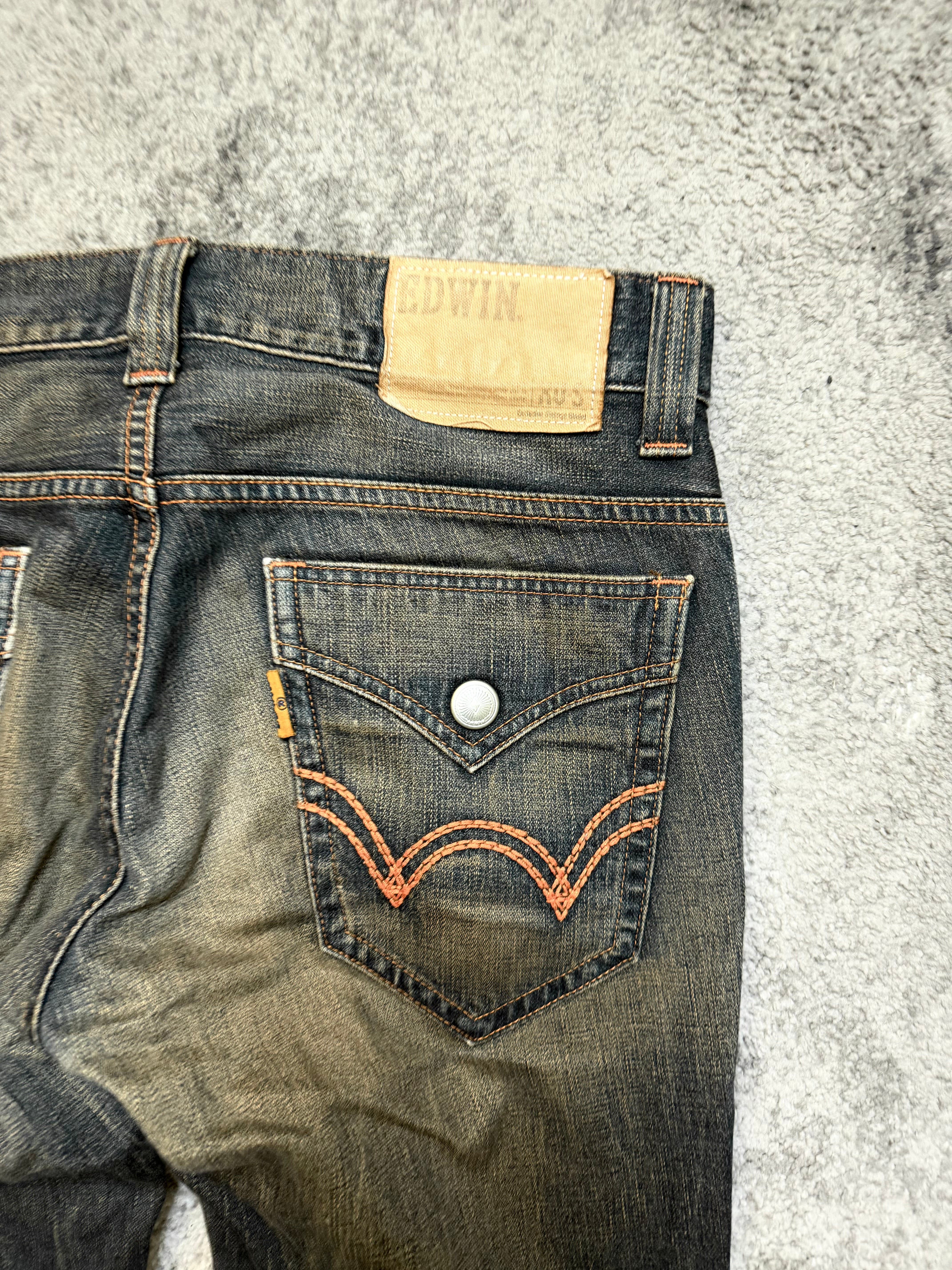 Signature EDWIN stitched back pockets with contrast orange thread