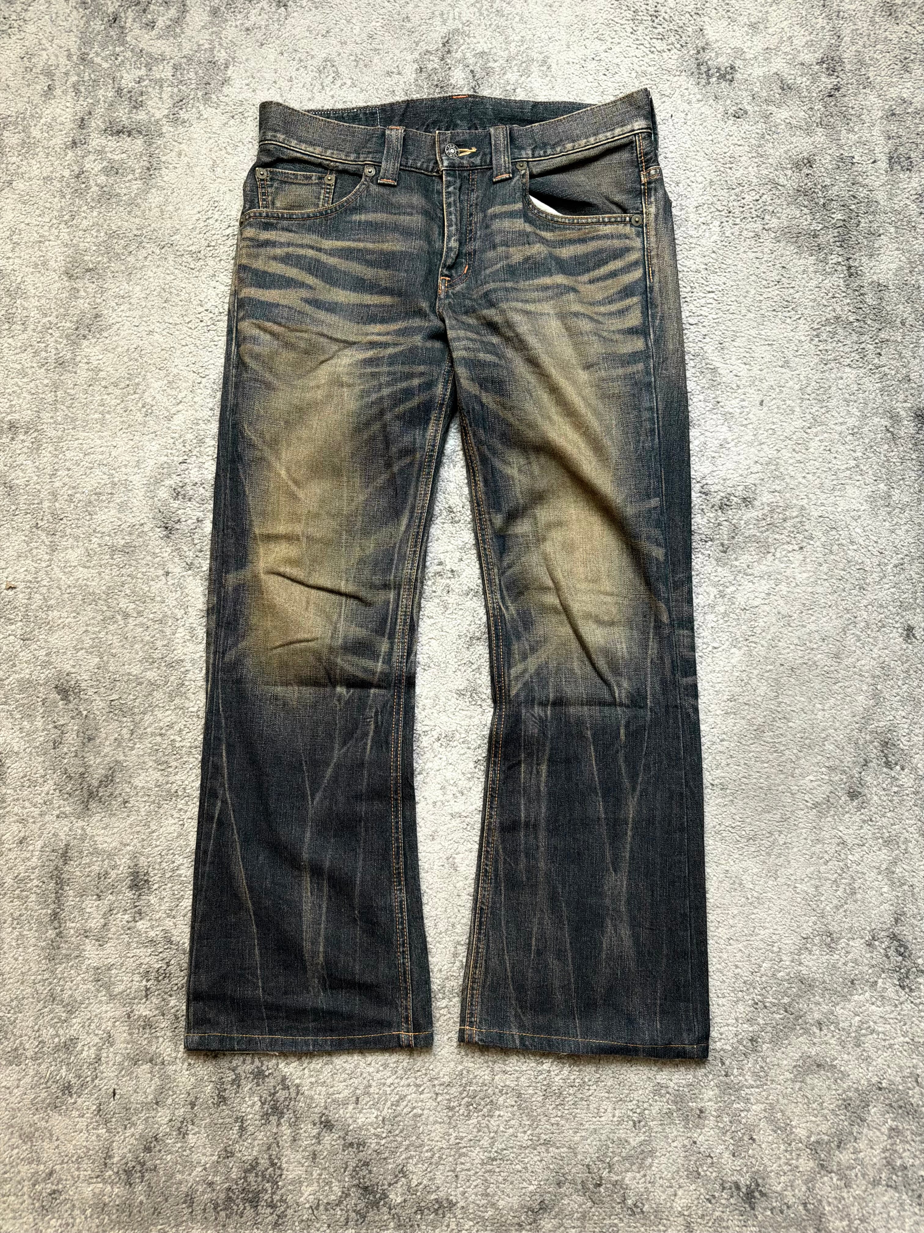 Condition: Pre-loved with intentional fading and natural whiskering throughout. Light fray at hems, no major flaws.