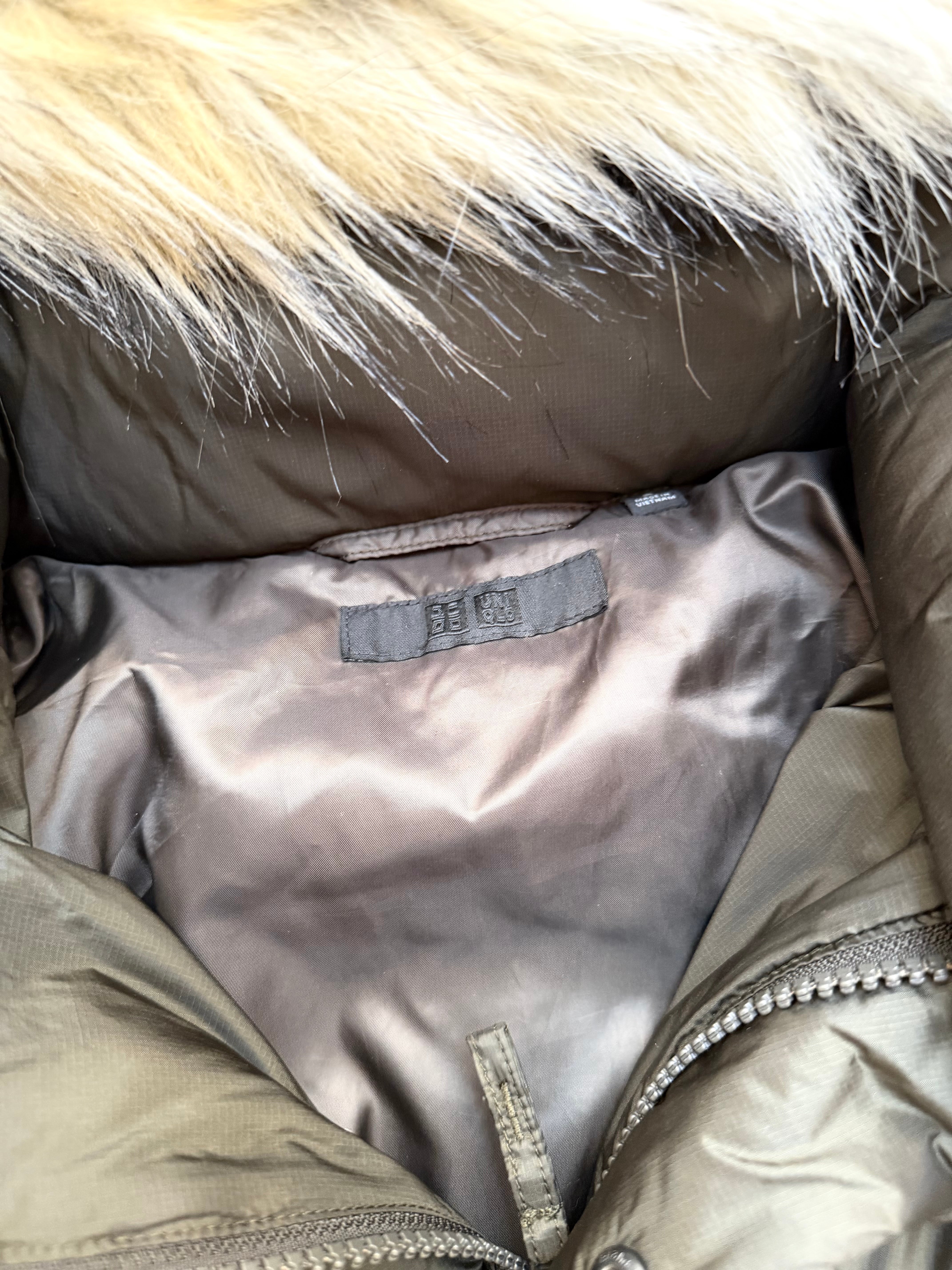 A winter essential with that quiet, intentional Japanese archive aura. This UNIQLO down jacket comes in an earthy deep-olive tone, packed with volume and structure while staying clean and understated. The detachable faux-fur hood adds a touch of rugged nostalgia—very Number (N)ine winter tour, very early-2000s Tokyo street layering.