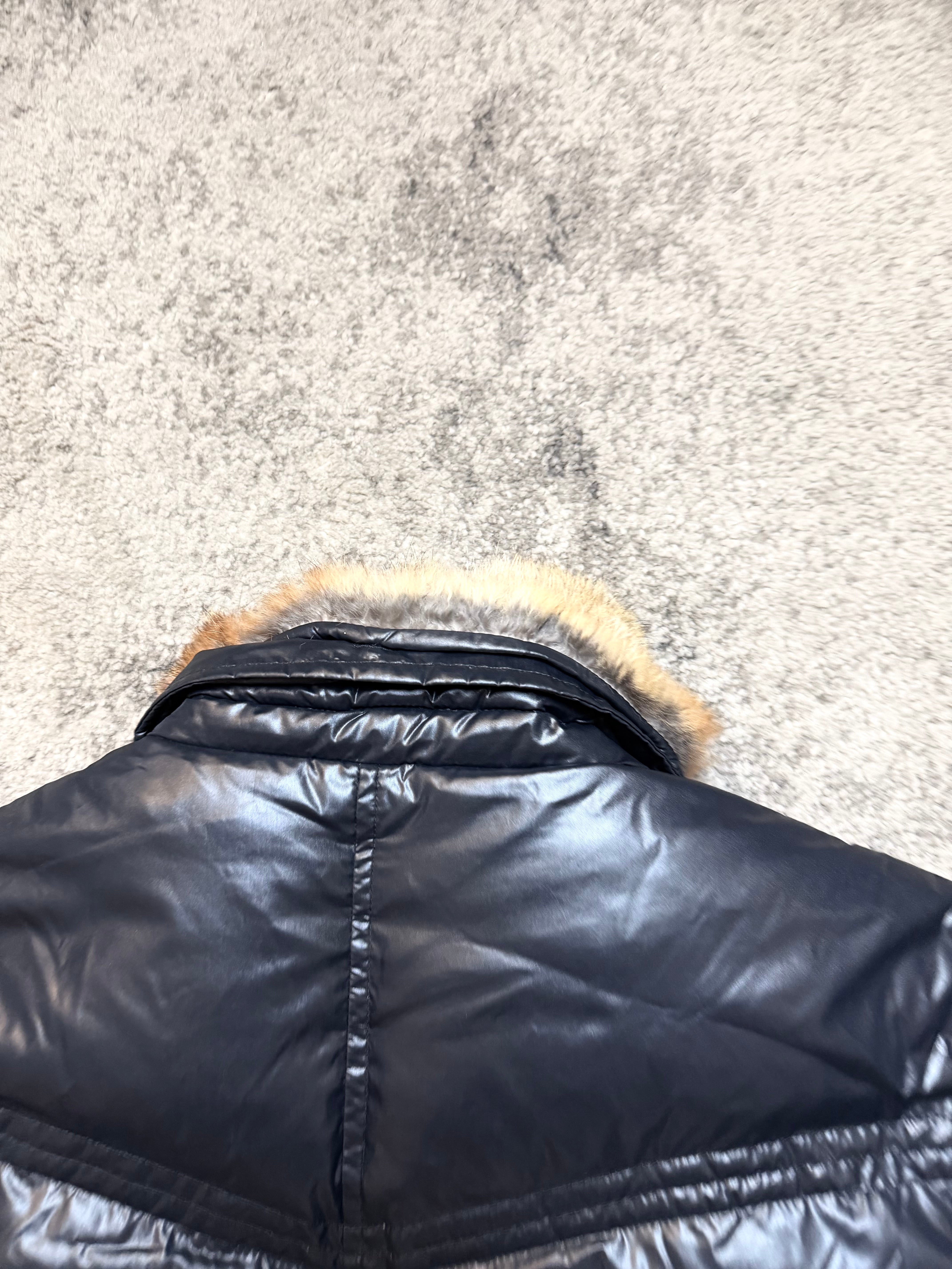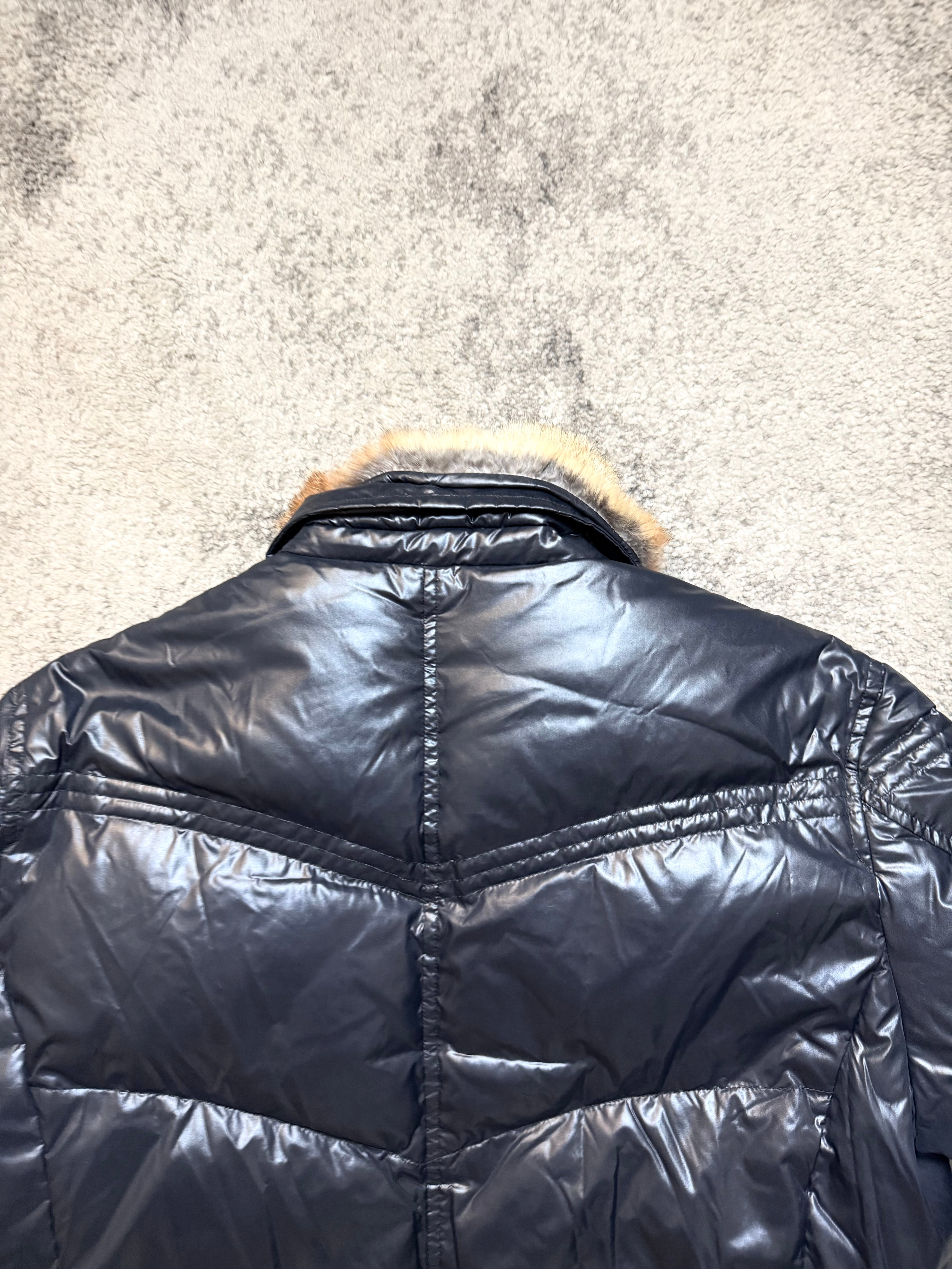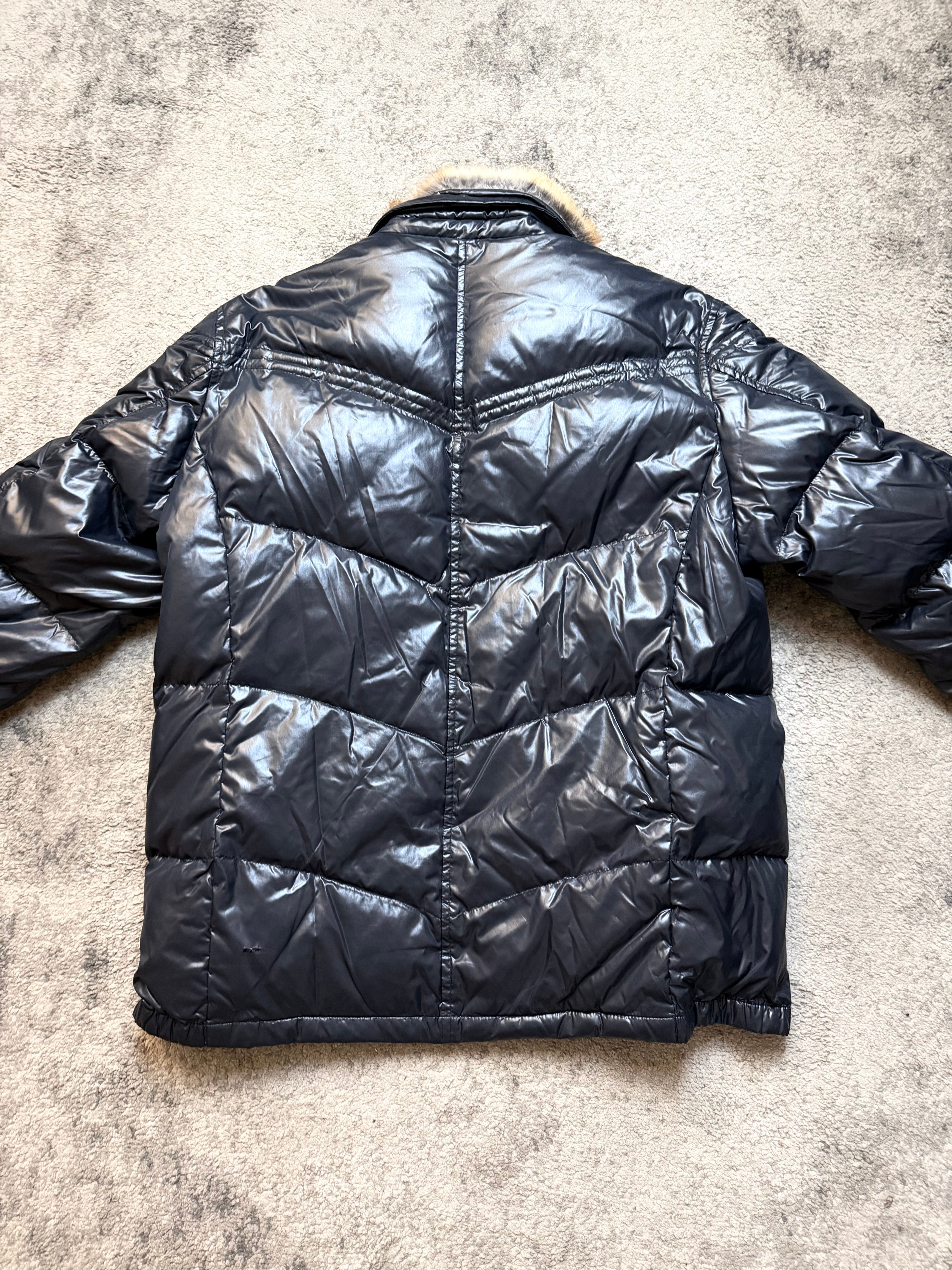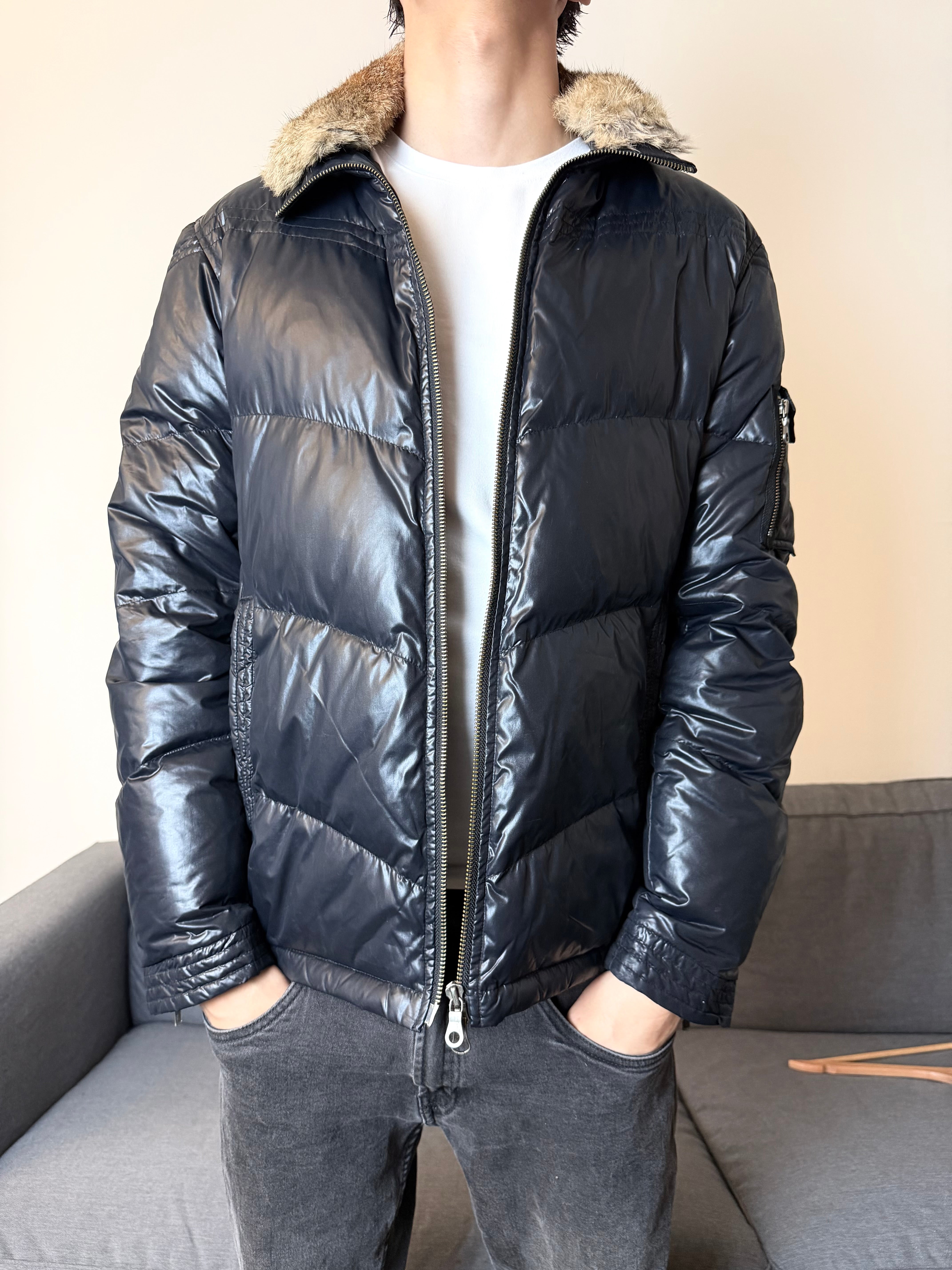 Glossy nylon shell with a warm, lightweight padded core. The faux-fur collar adds that unmistakable early-2000s luxury grit — a detail seen in Number (N)ine–era outerwear and Western-inspired Japanese pieces.