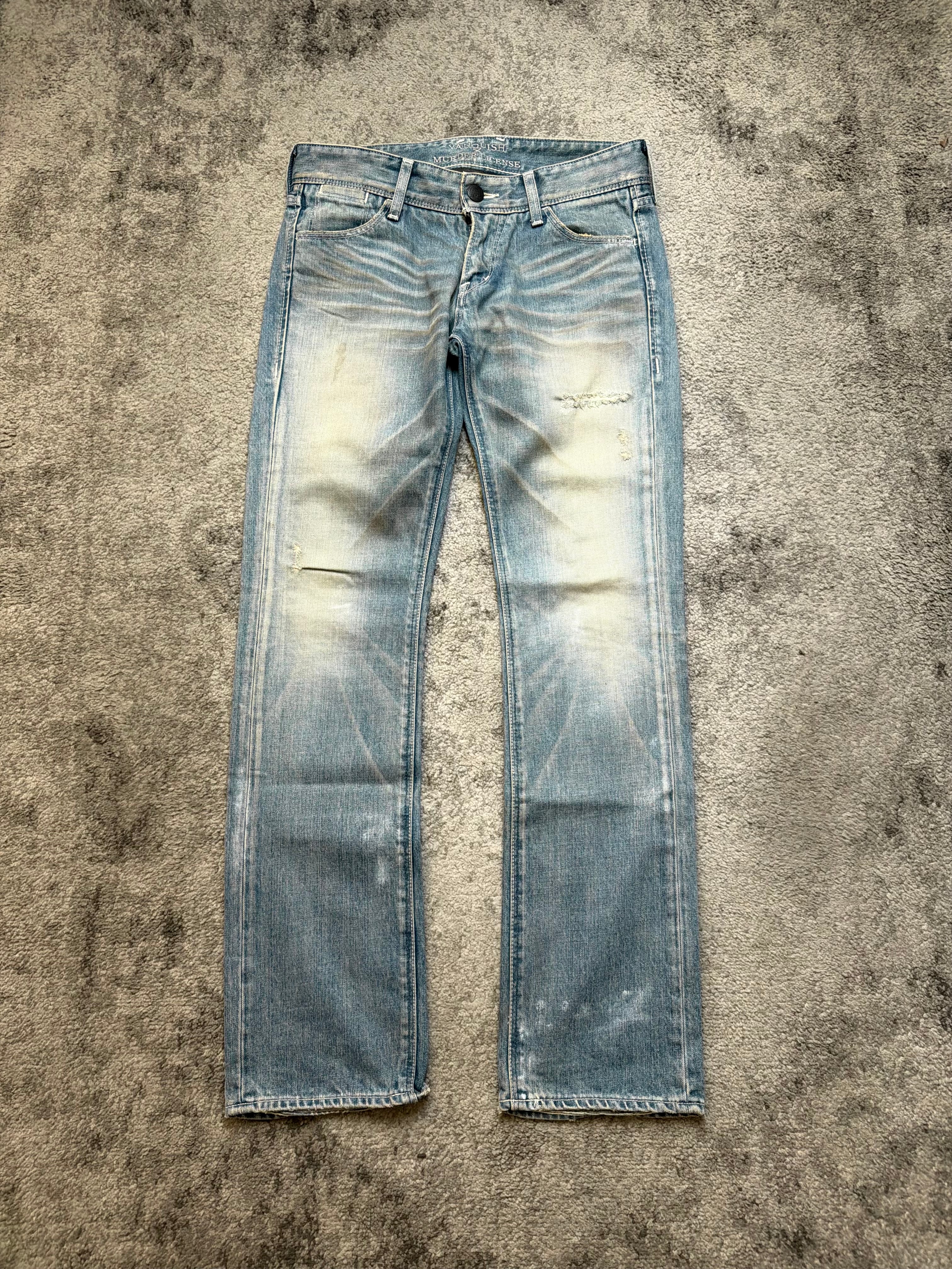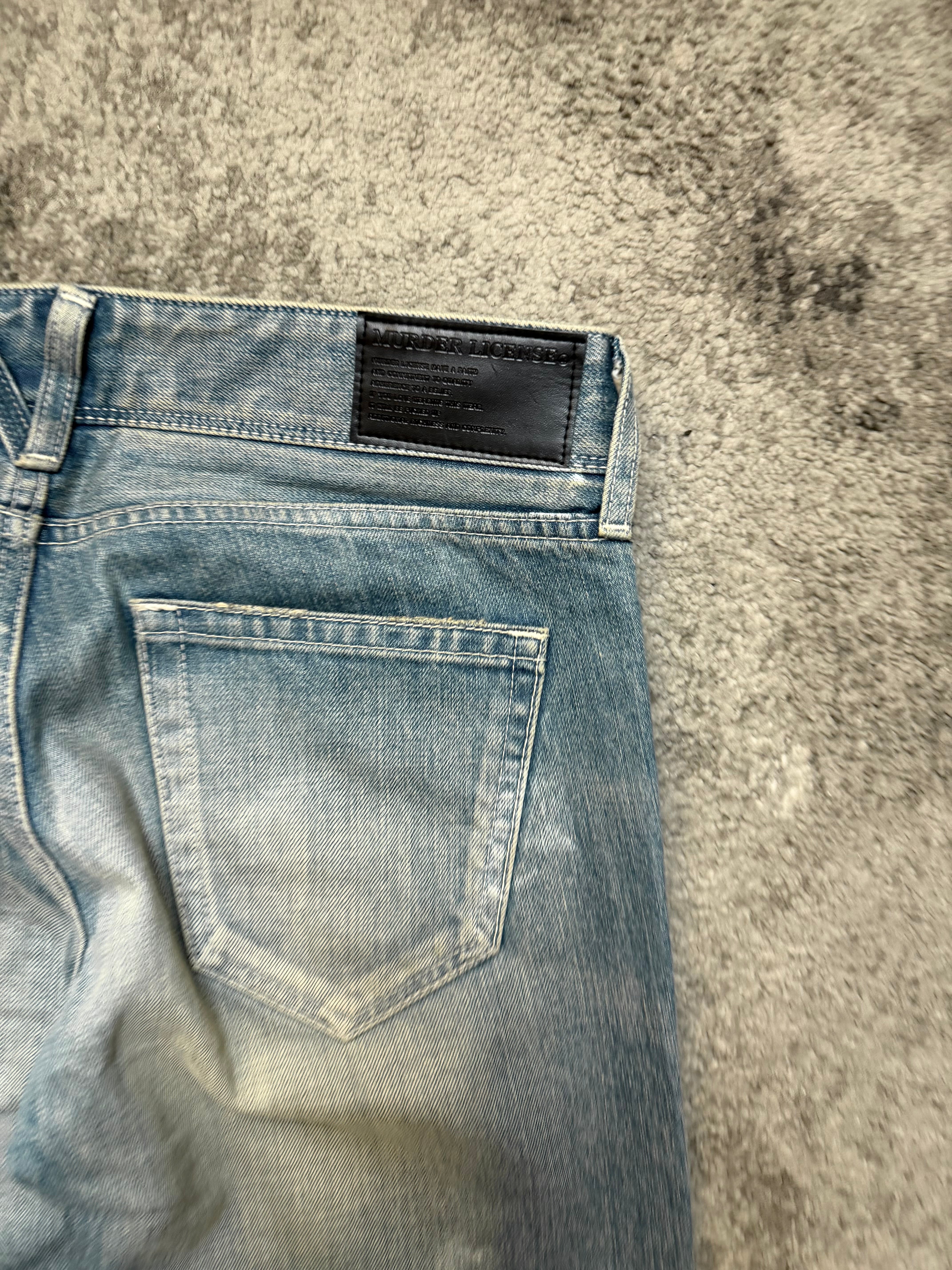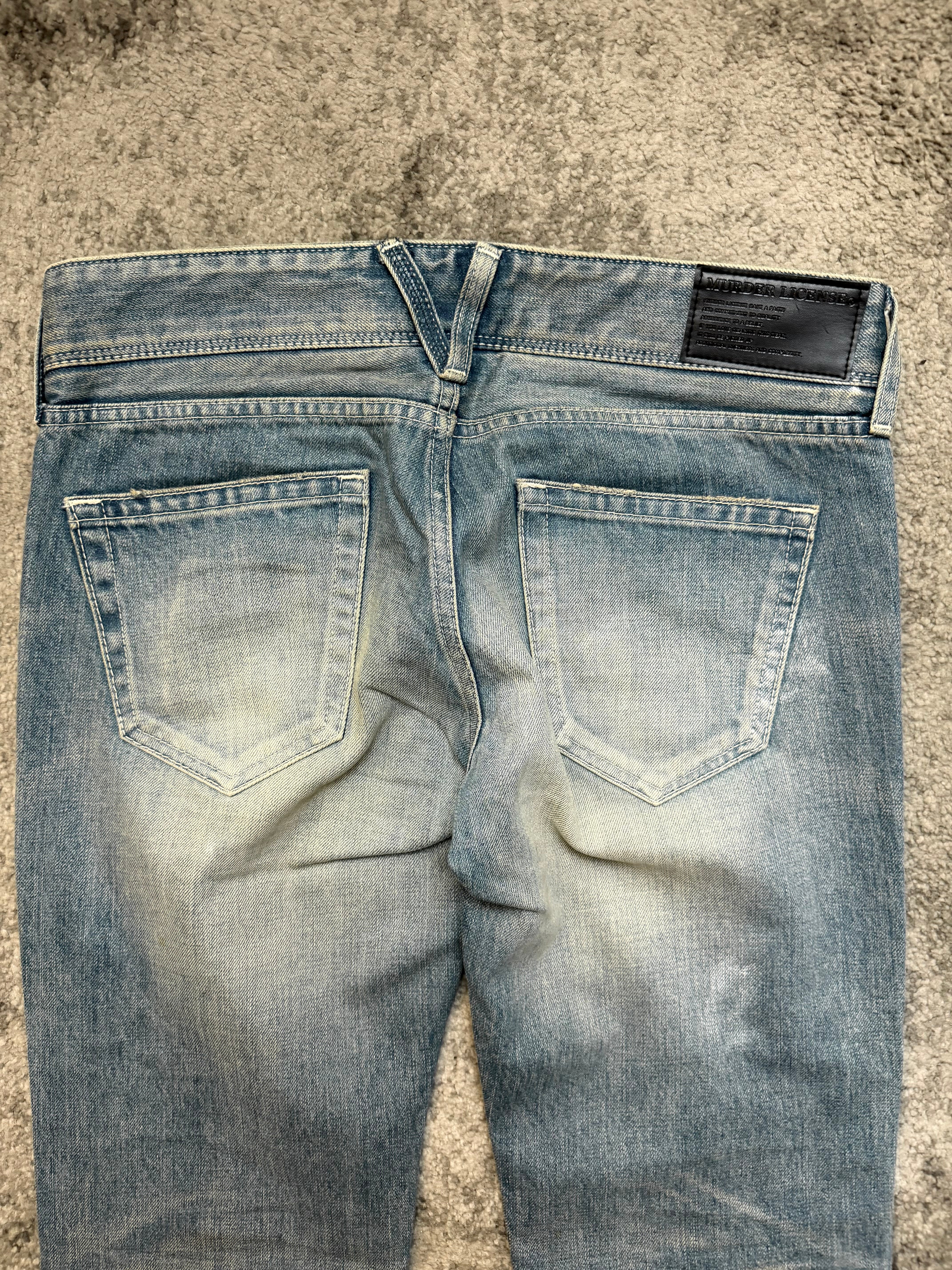 A rare collaboration from two Tokyo icons – VANQUISH and MURDER LICENSE. This denim feels like the aftermath of chaos: washed-out indigo, worn knees, quiet rebellion. It’s that perfect mix of clean lines and reckless energy — the kind that only Japan’s Y2K underground could create.