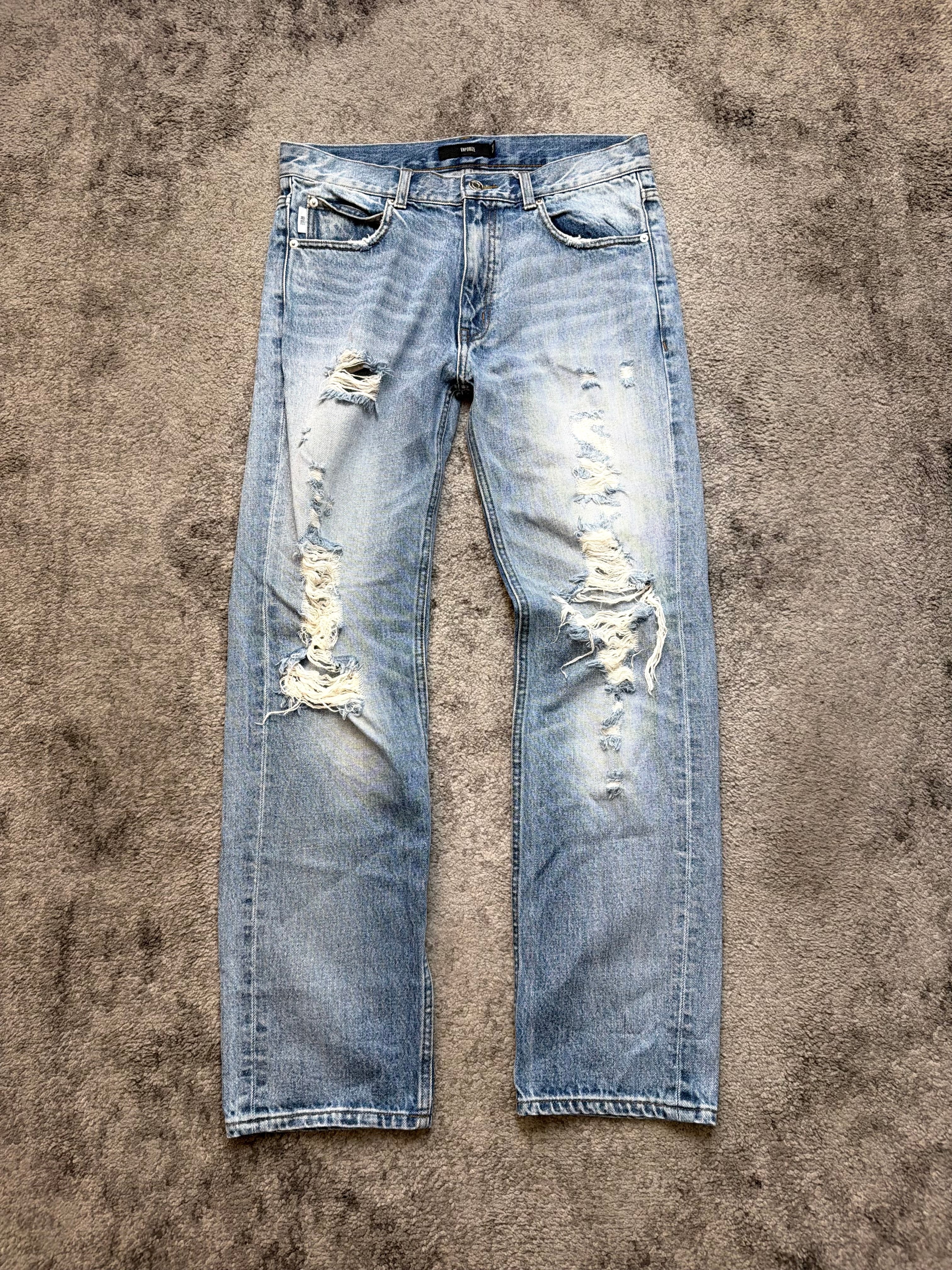 VAPORIZE “破れた未来 / Shattered Future” Distressed Denim — Japanese Archive Cut
