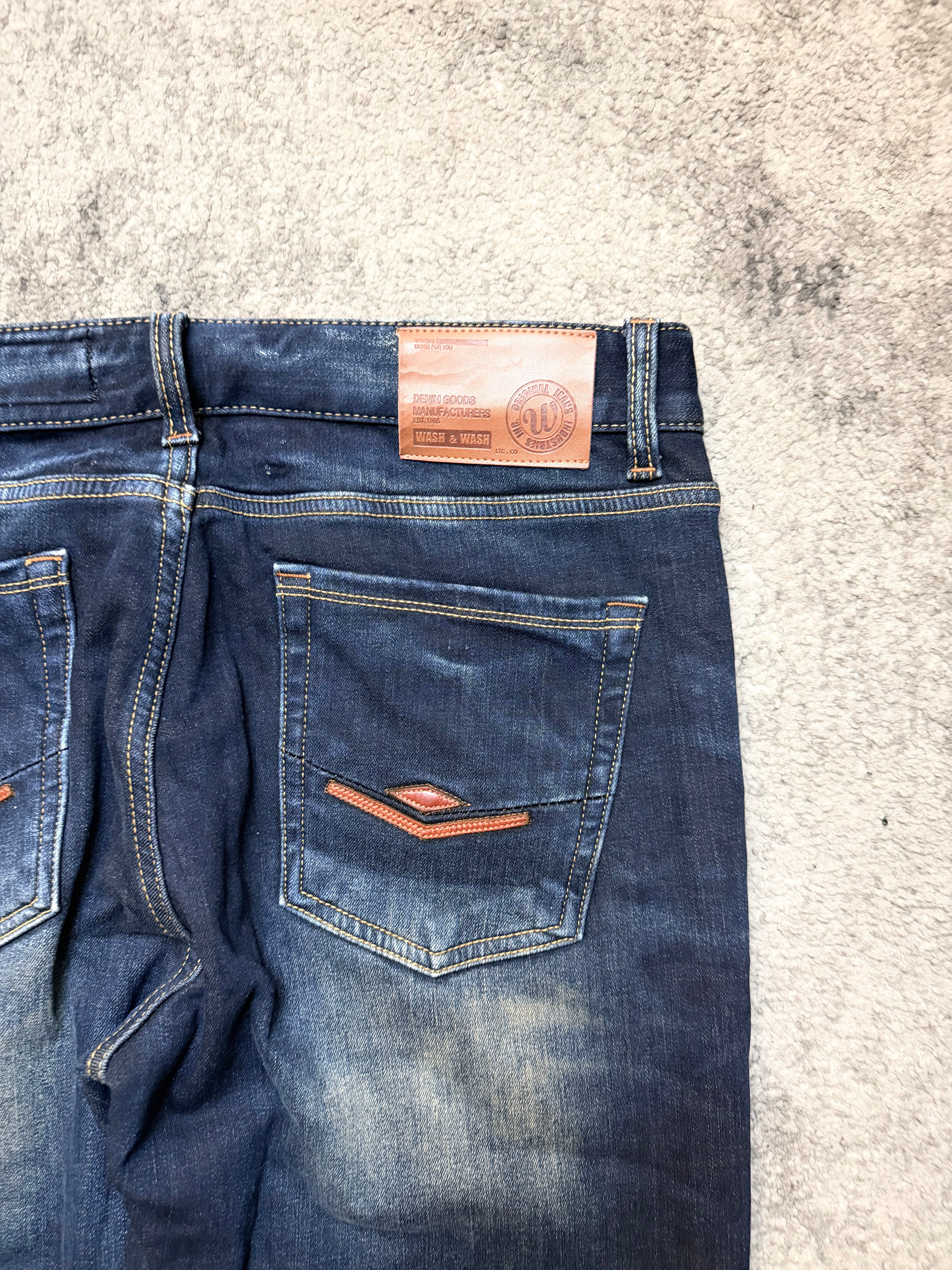 Wash & Wash “Nocturnal Echoes” Denim – a quiet storm cut in deep indigo.